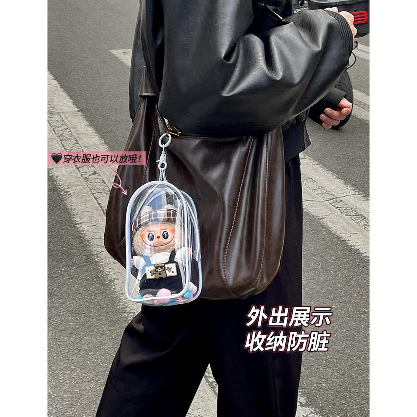 labubu保护套马卡龙坐坐派对防尘袋遛娃包搪胶15cm拉布布保护罩
