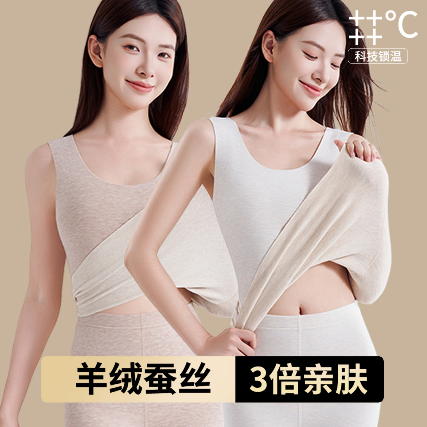 雅鹿莱赛尔保暖背心女款秋冬高弹磨毛发热保温内衣无痕打底衫上衣 - 雅鹿美体旗舰店