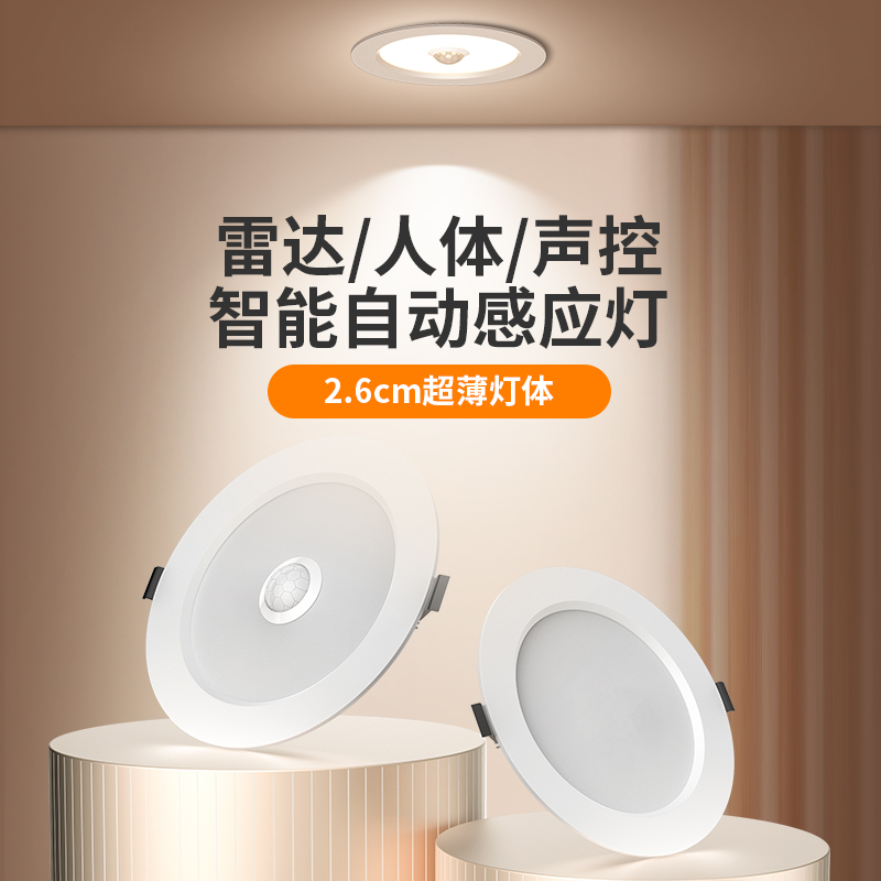 led智能声控人体感应筒灯嵌入式天花灯家用吊顶玄关过道走廊射灯 - 拉伯塔旗舰店