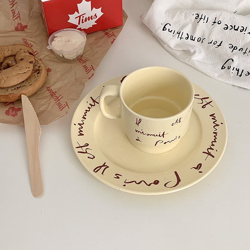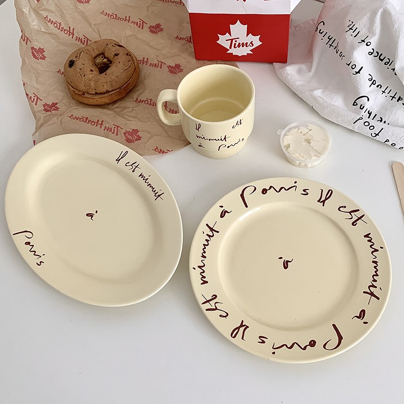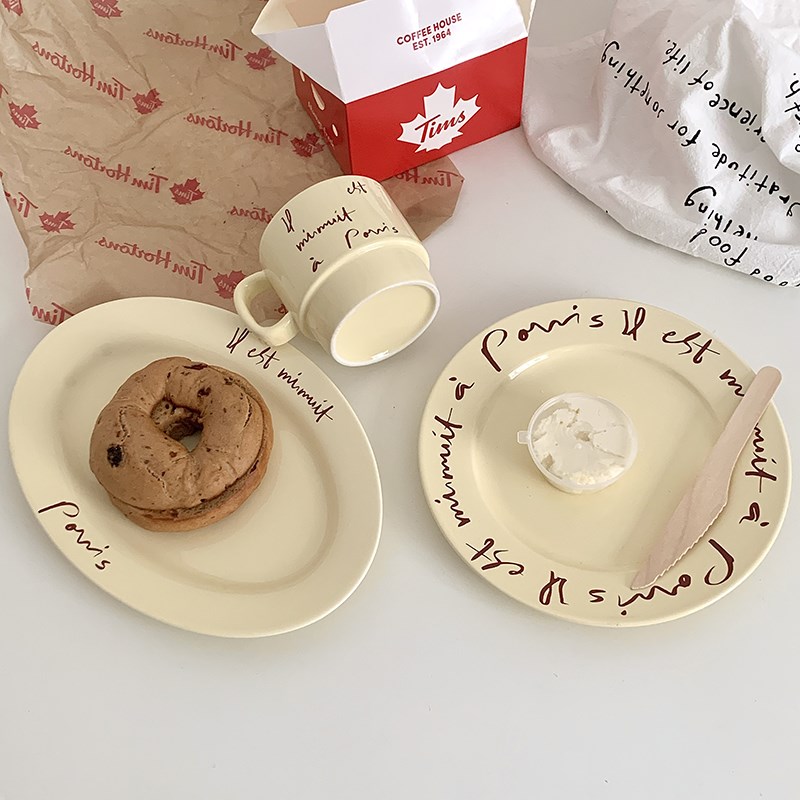 回馈奶油色字母餐具套装家用菜盘早餐陶瓷H盘咖啡马克杯奶fufu鱼 - 德源工厂直销