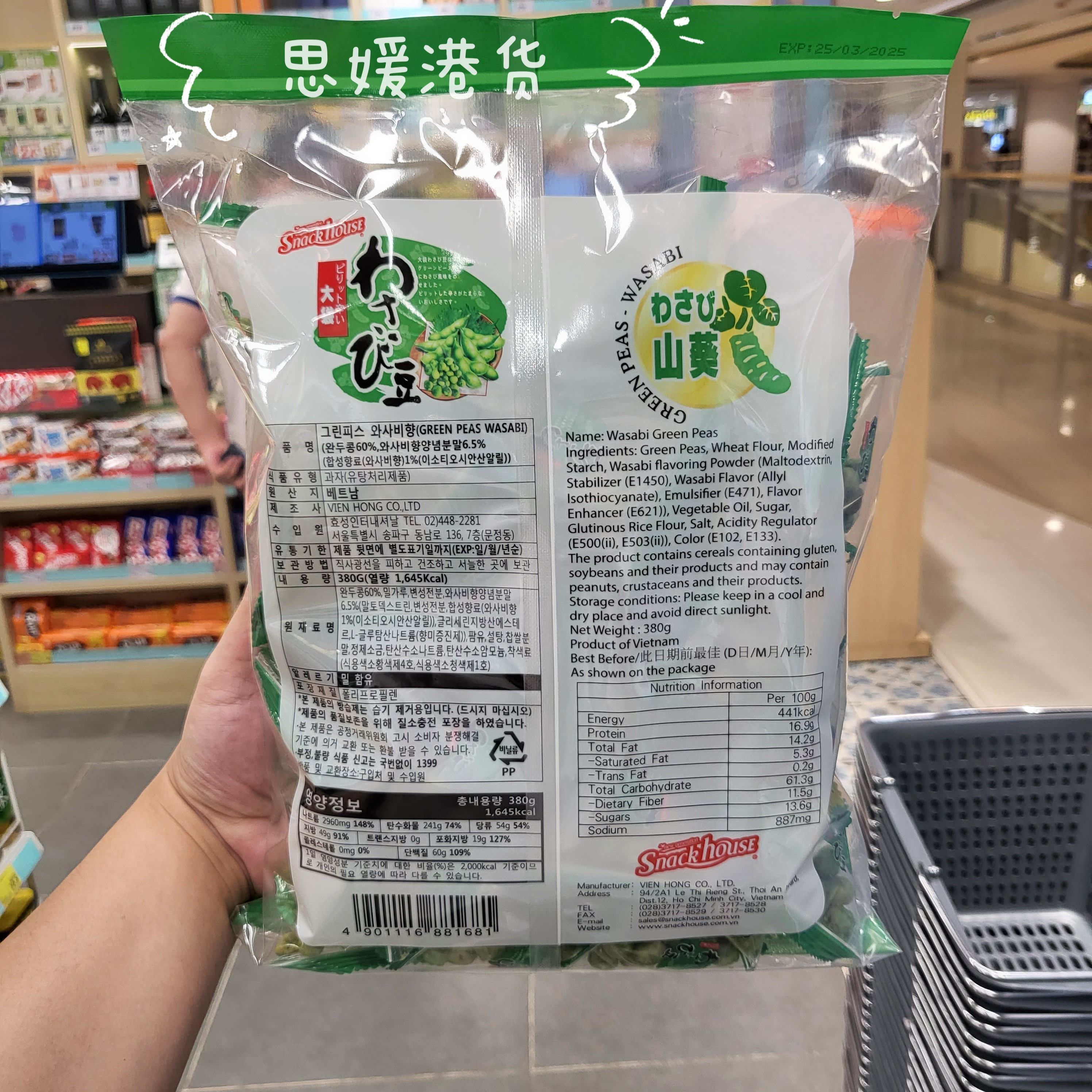 香港代购 越南进口Snack house大袋芥末青豆家庭装杂锦味零食380g - 思媛港货小店