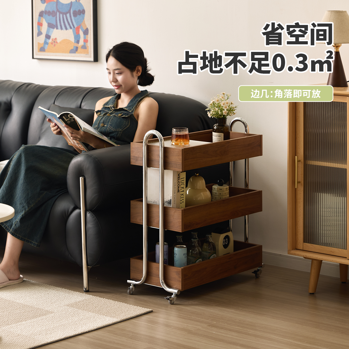 威展实木沙发侧边柜2025新款轻奢高级感客厅边几家用小户型可移动 - 威展旗舰店