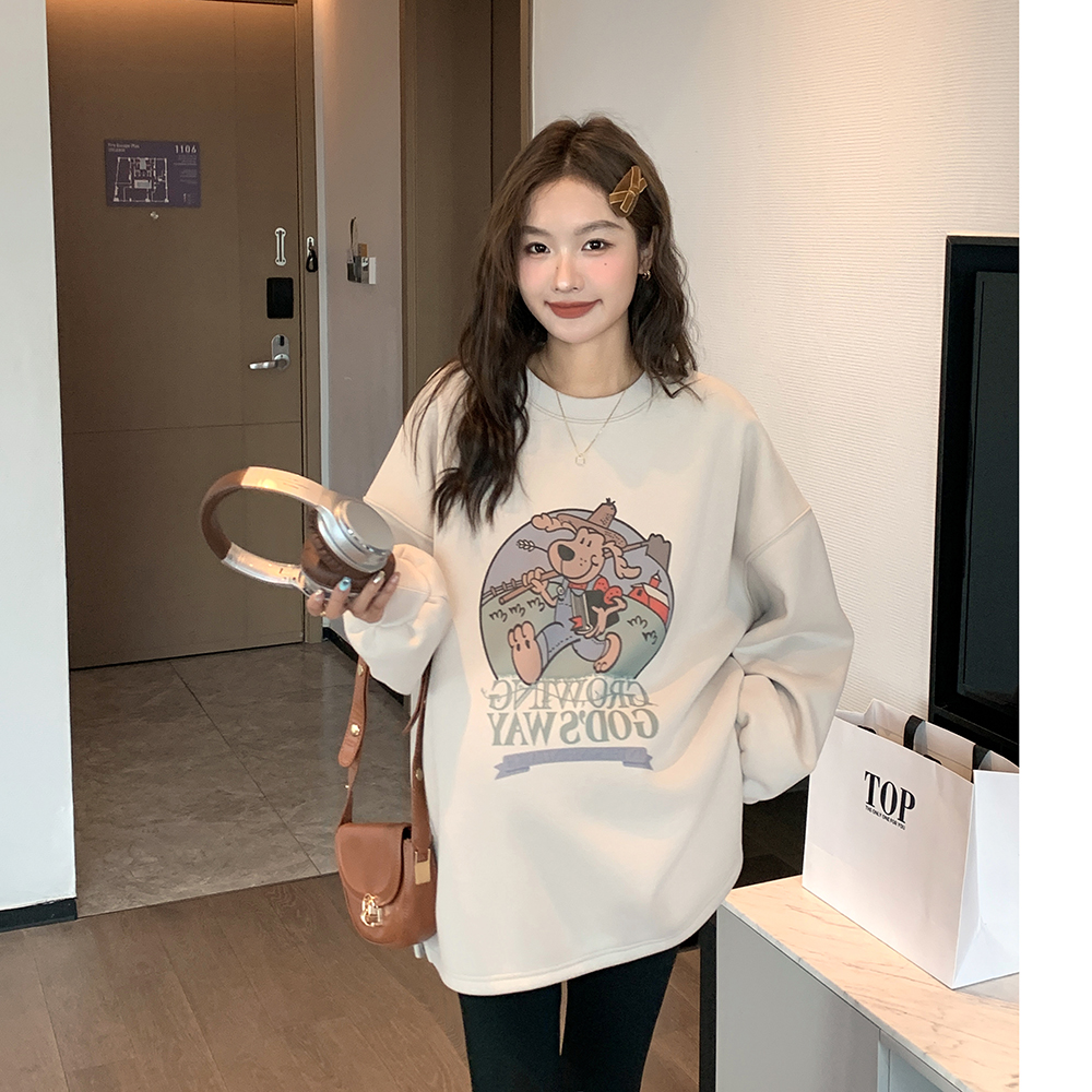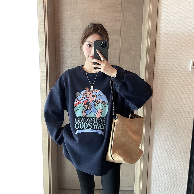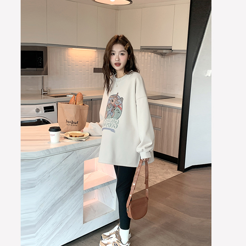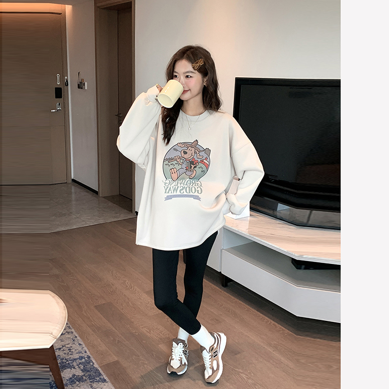 休闲慵懒风~孕妇装卫衣春秋装宽松遮屁股运动风卡通印花孕期上衣 - 诺初母婴孕妇装