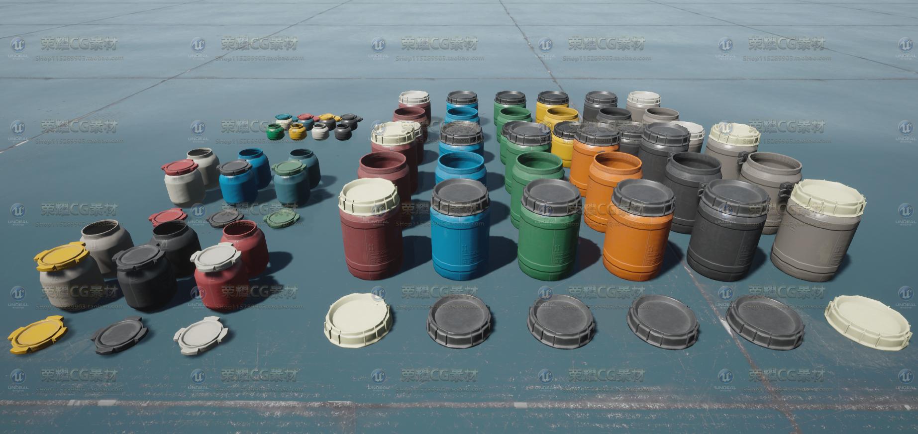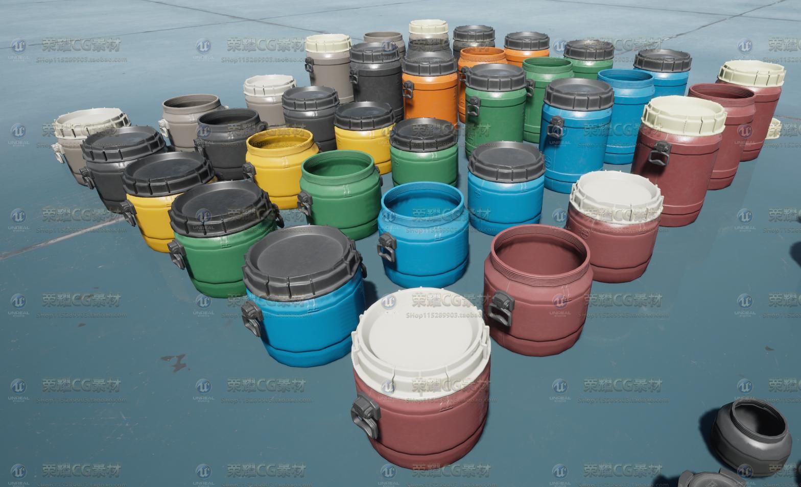 UE4虚幻4场景写实橡胶塑料桶非实物游戏3D模型 - 荣耀CG素材