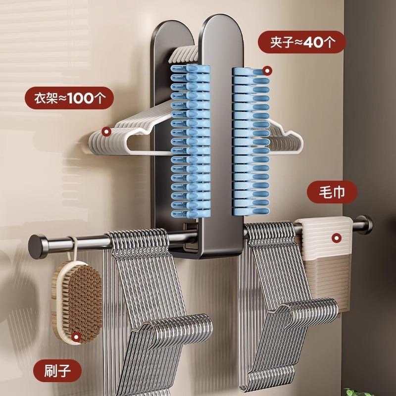 衣架收纳神器免打j孔阳台墙上壁挂多功能整理架子家用折叠晾衣挂 - 风松堂日用品的小店54