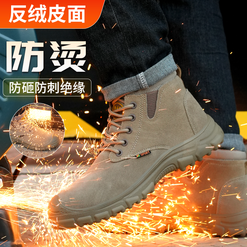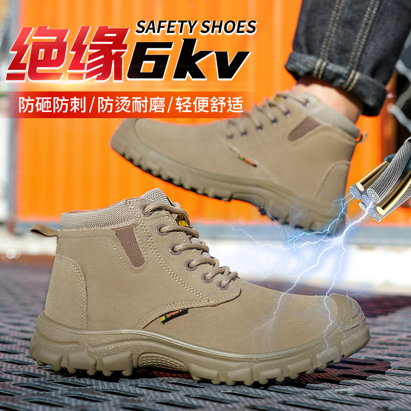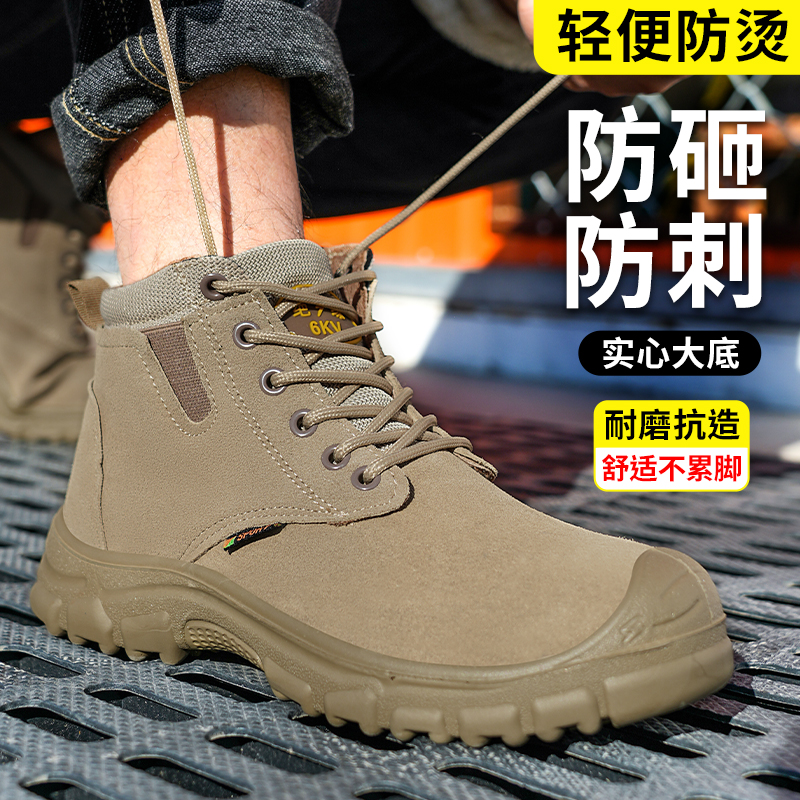 高帮绝缘劳保男鞋钢头防砸防刺穿牛皮防烫透气防臭电焊工地实心底