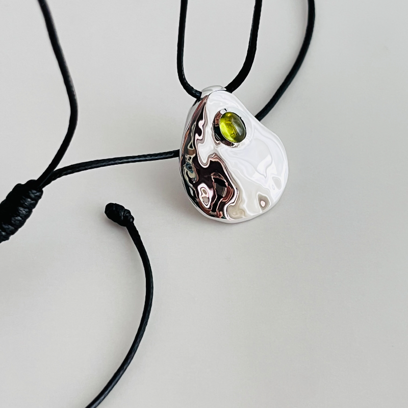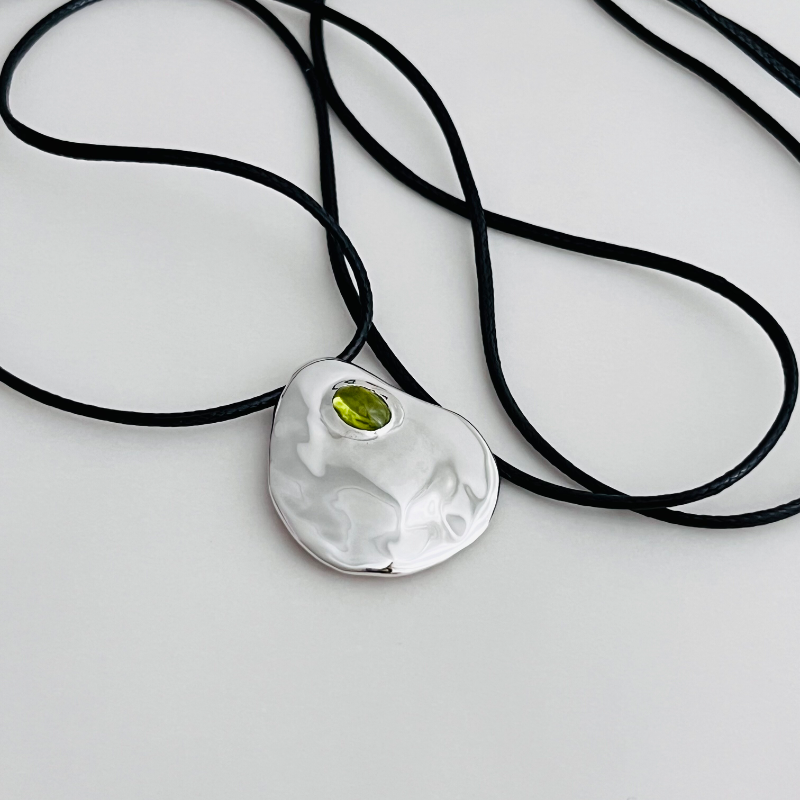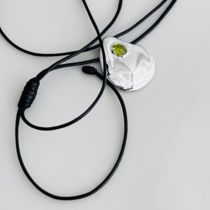设计师款S925通体纯银镀铑金天然葡萄石银饼蜡绳抽拉毛衣链 - HAOSHIYINMEN 好饰银门