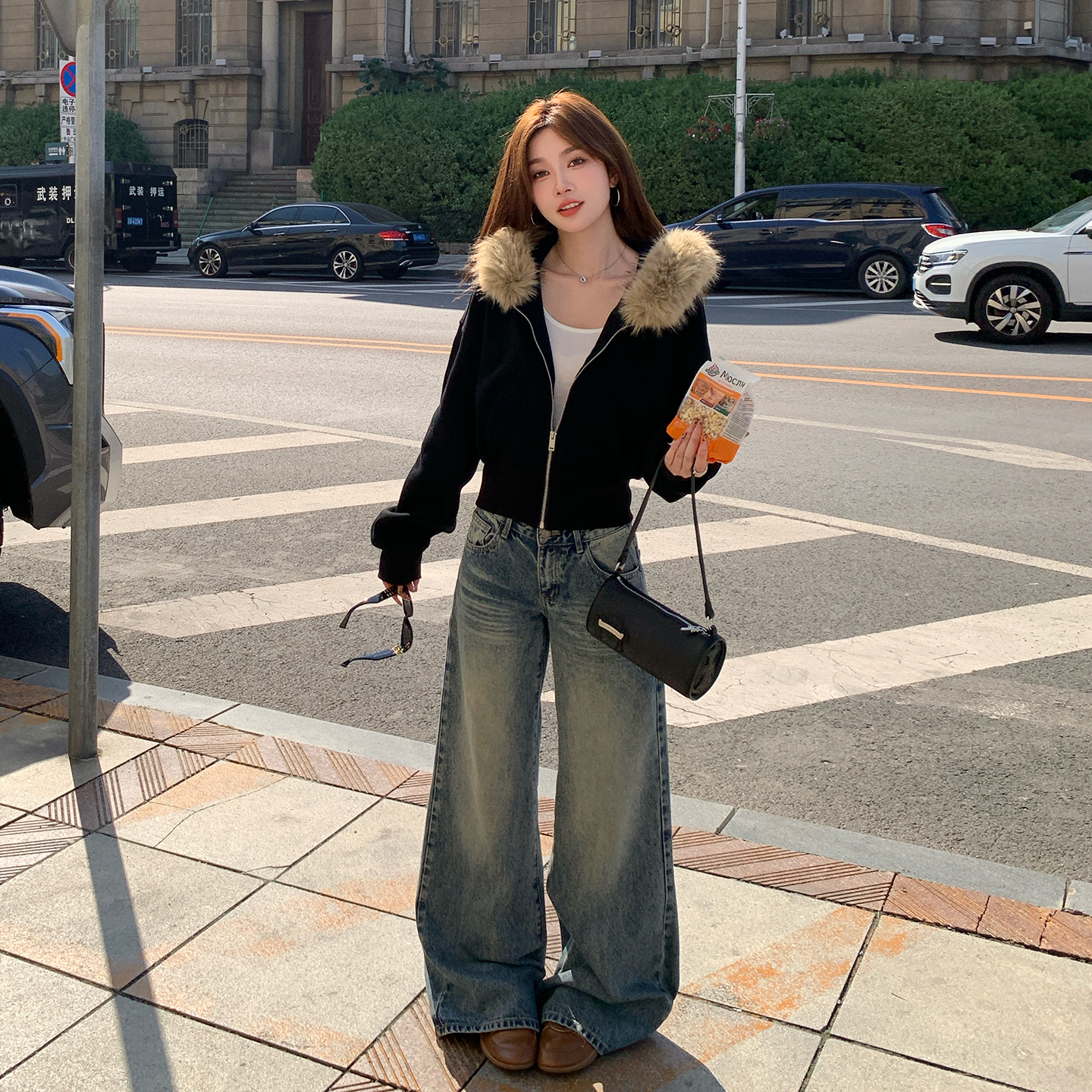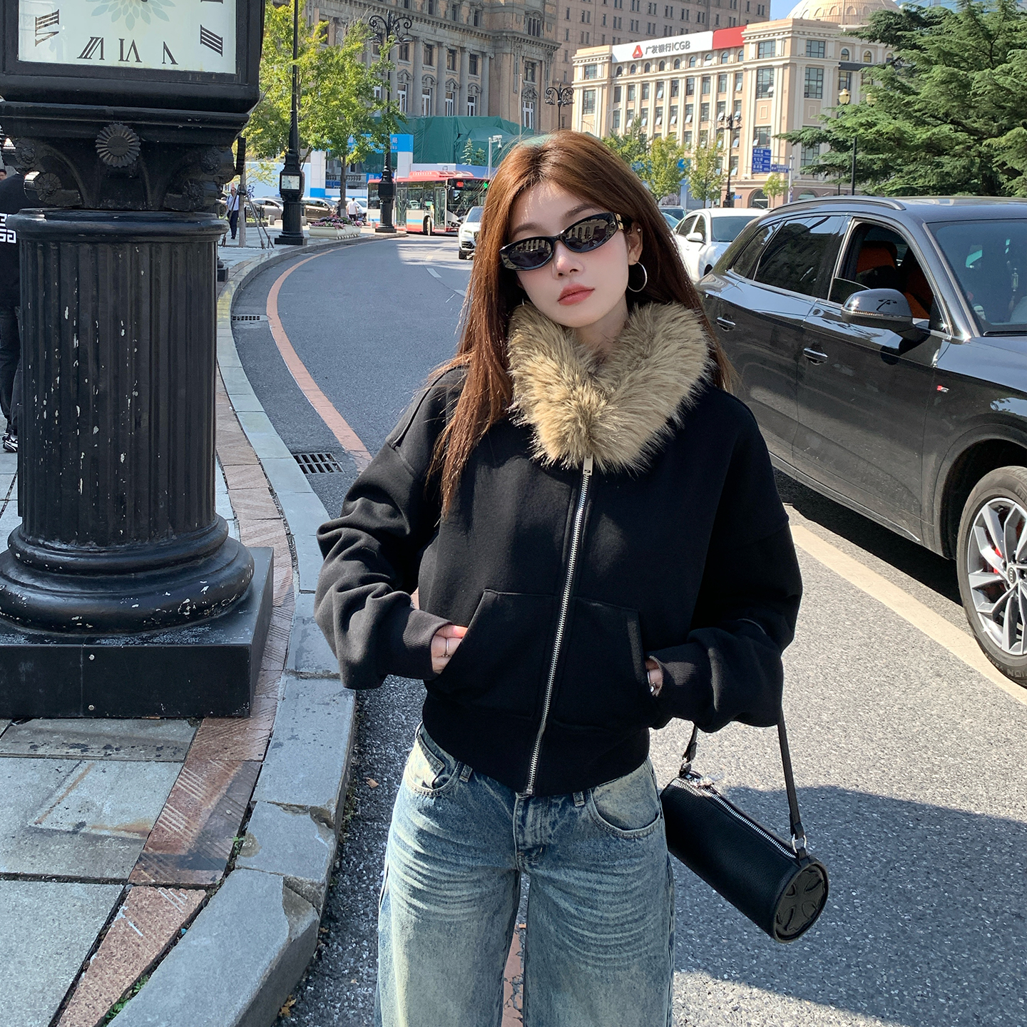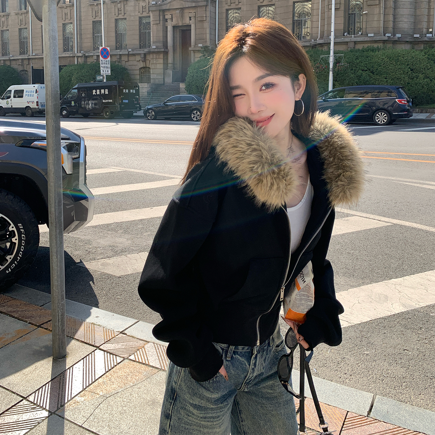您的位置:他他商城  >  女装  >  alex tevens复古毛领连帽卫衣拉链外套女冬季黑色加绒保暖短上衣