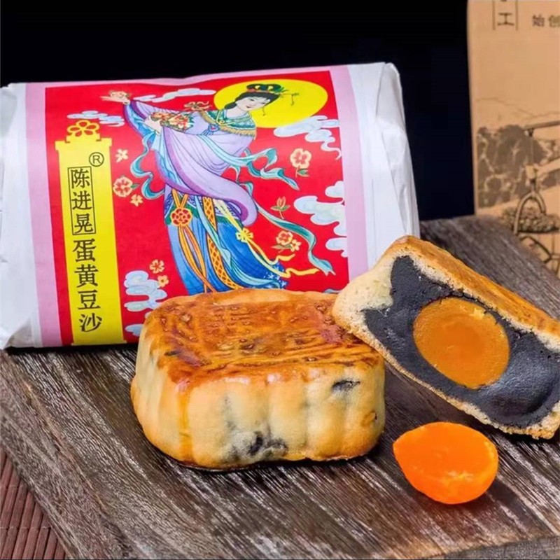 正宗台山特产深井陈进晃柴火蛋黄黑豆沙广式月饼筒装传统手工包装 - 台山侨乡特产店