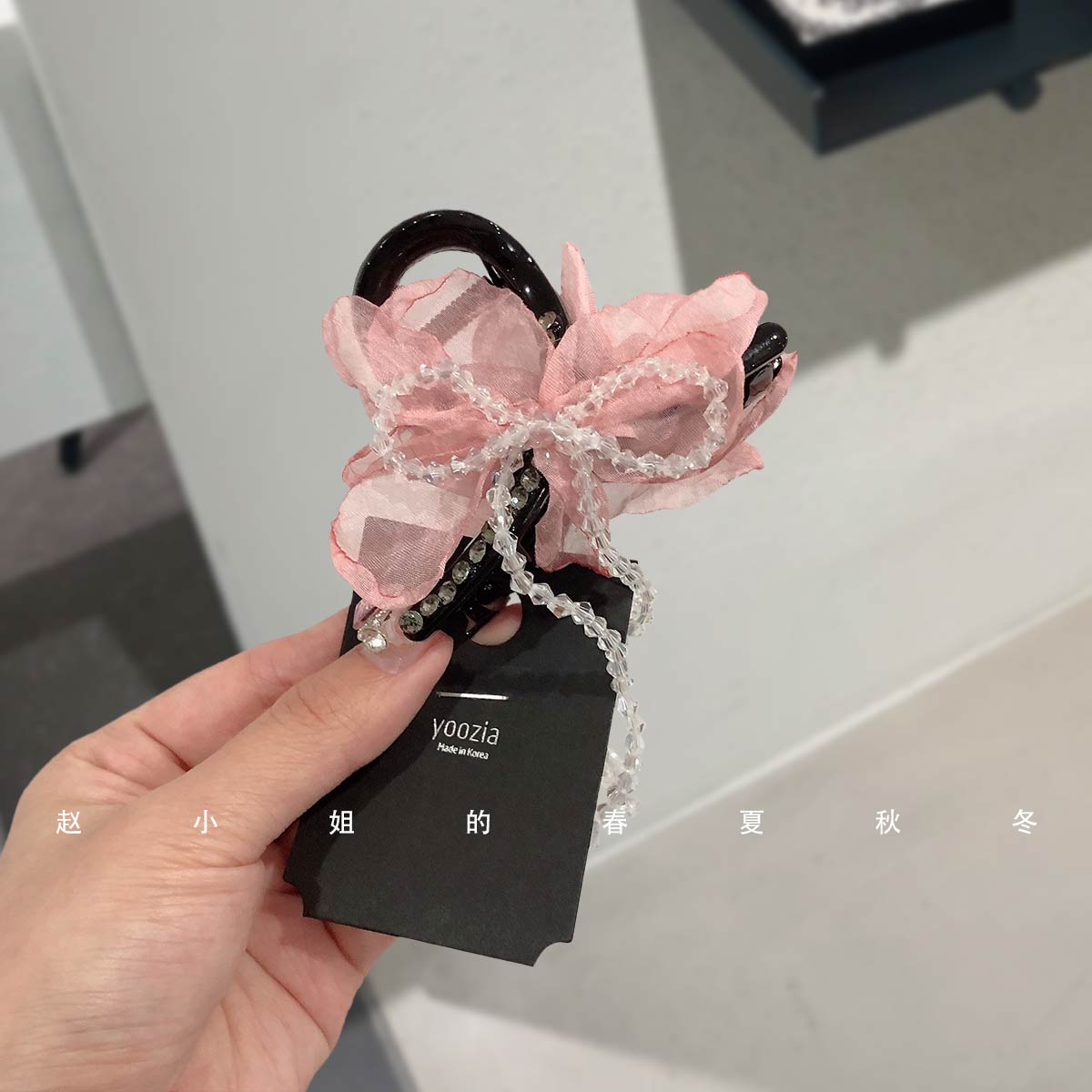 小众设计头饰发饰ins网纱饰品可爱甜美头绳发抓夹镶钻粉色鲨鱼夹 - 赵小姐的春夏秋冬饰品