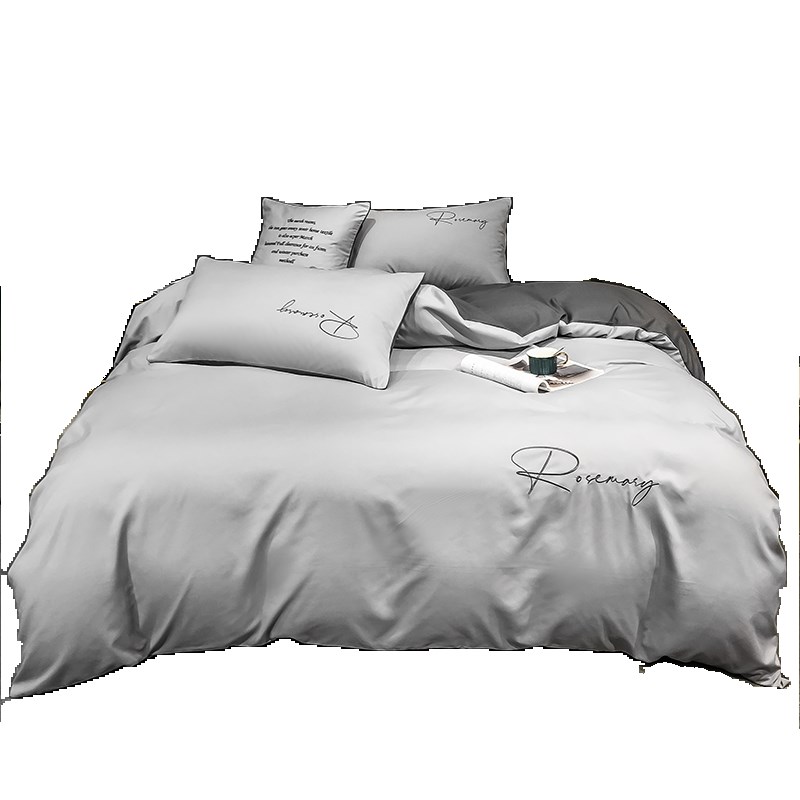 北欧轻奢风刺绣素色简约床单单件被套被罩学N生宿舍三件套单人床 - 安水斋日用品