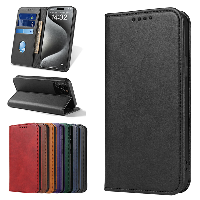 适用于苹果iphone17ProMax掀翻盖手机壳16牛皮纹14plus电话保护套15磁吸se2折叠卡3棕蓝8红黑色Air Flip case