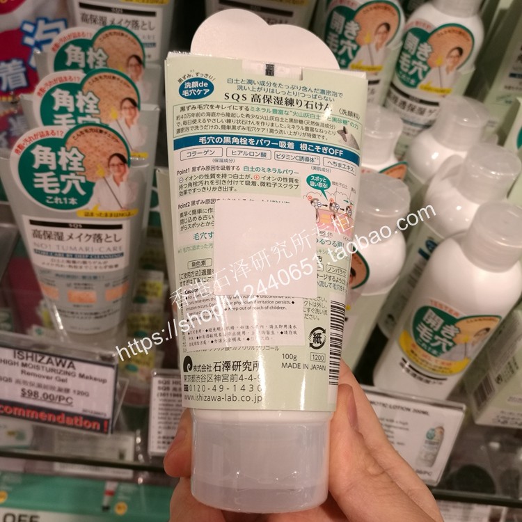 日本原装石泽研究所SQS高保湿火山灰白土洗面奶洁面膏 收毛孔100g - 奈良的小鹿全球购