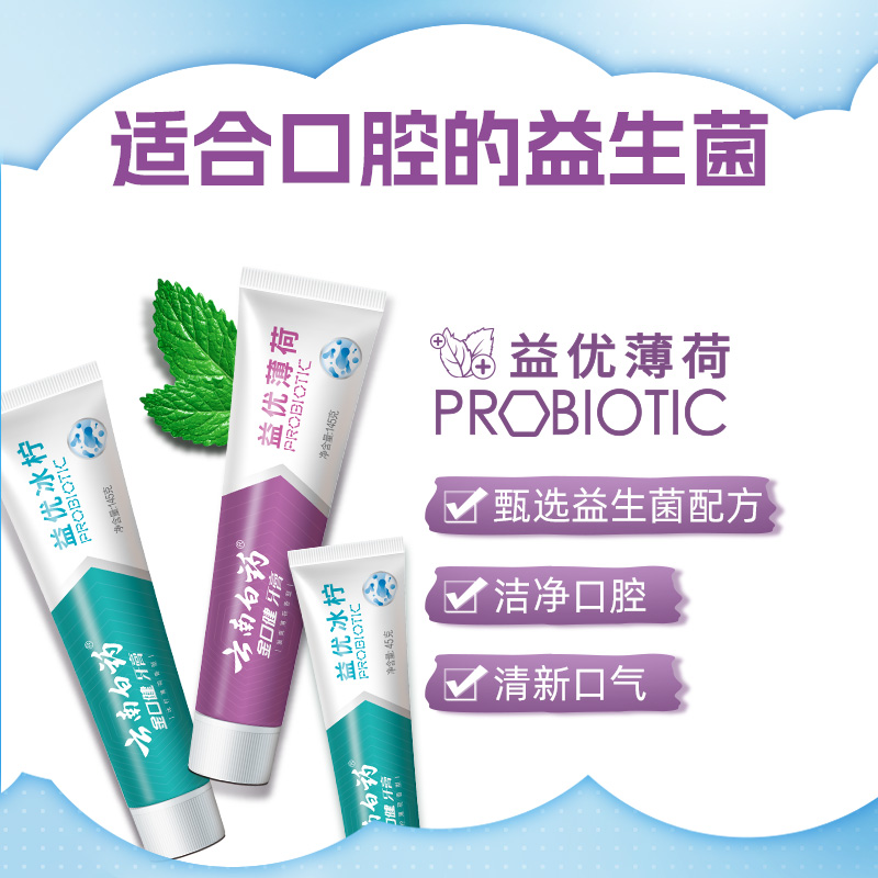 云南白药牙膏正品益生菌冰柠激爽薄荷去黄亮白牙齿清新口气实惠装 - 银河日化馆