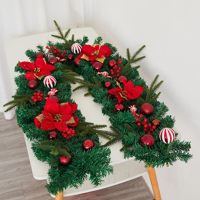 圣诞节装饰品圣诞树花环藤条挂件酒店店铺商场景氛围布置雪花装扮