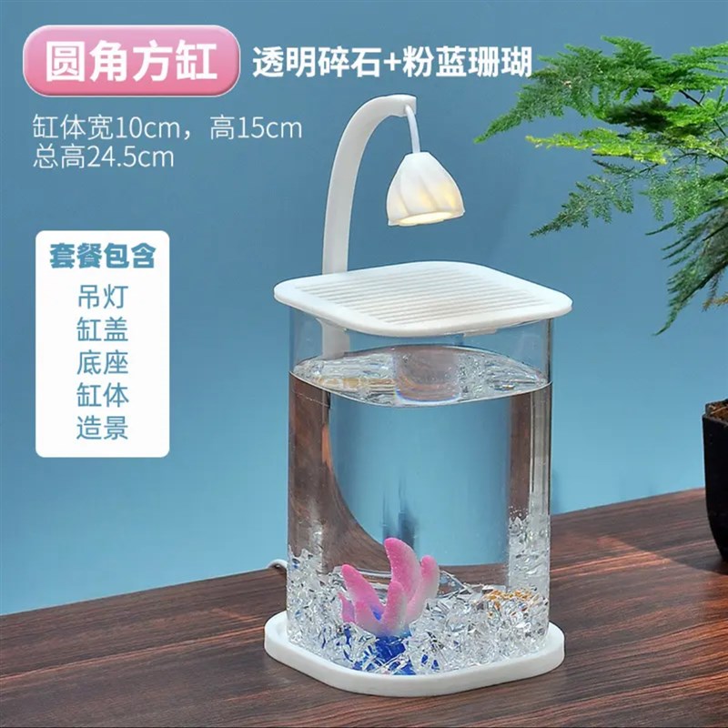 斗鱼专用双缸高透迷你小型网红造景玻璃桌面Q缸工位感带灯盖子 - 乐土店日用品