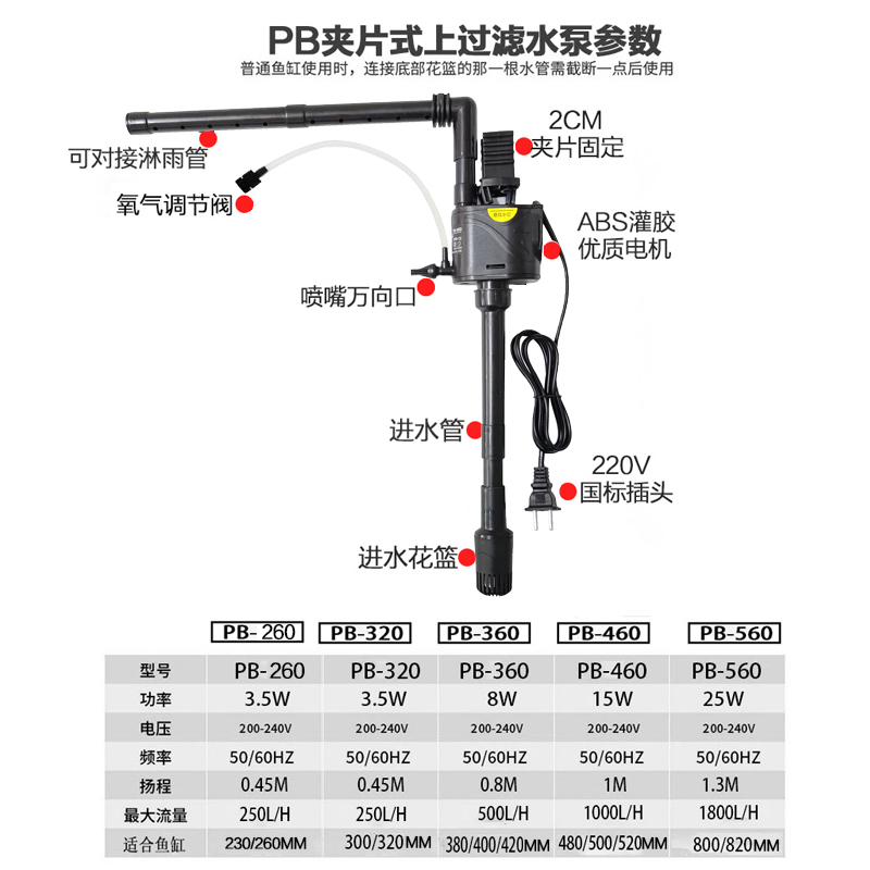 小型鱼缸过滤器多功能三合一增氧潜水泵金利佳PB-360超静音循环泵 - 乐广水族