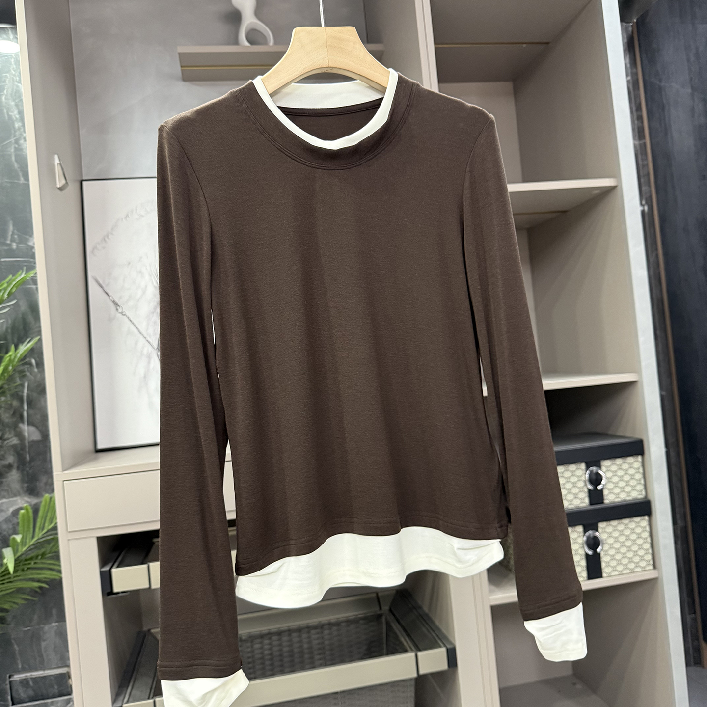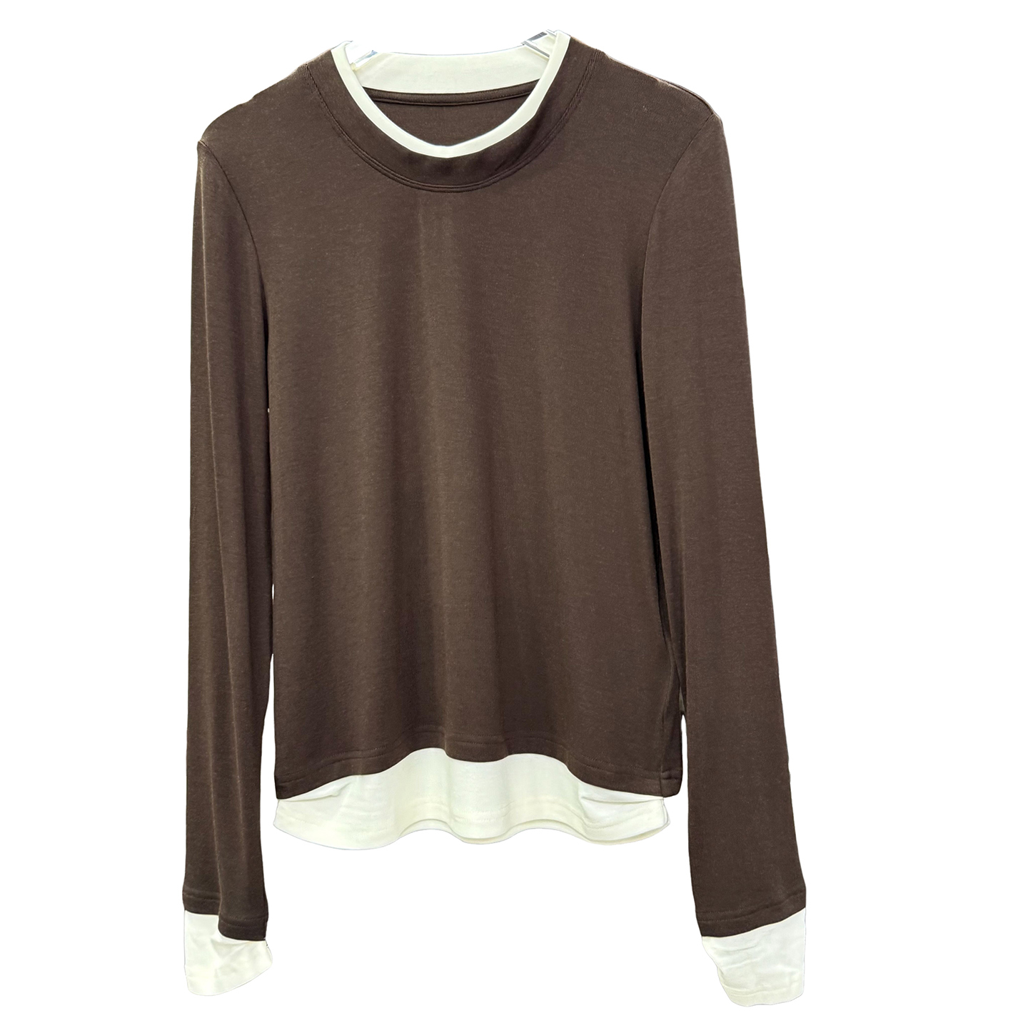 怒推!裸感ji别!假两件薄款羊毛圆领长袖针织打底衫女 H96323~ZY - 锐雪加