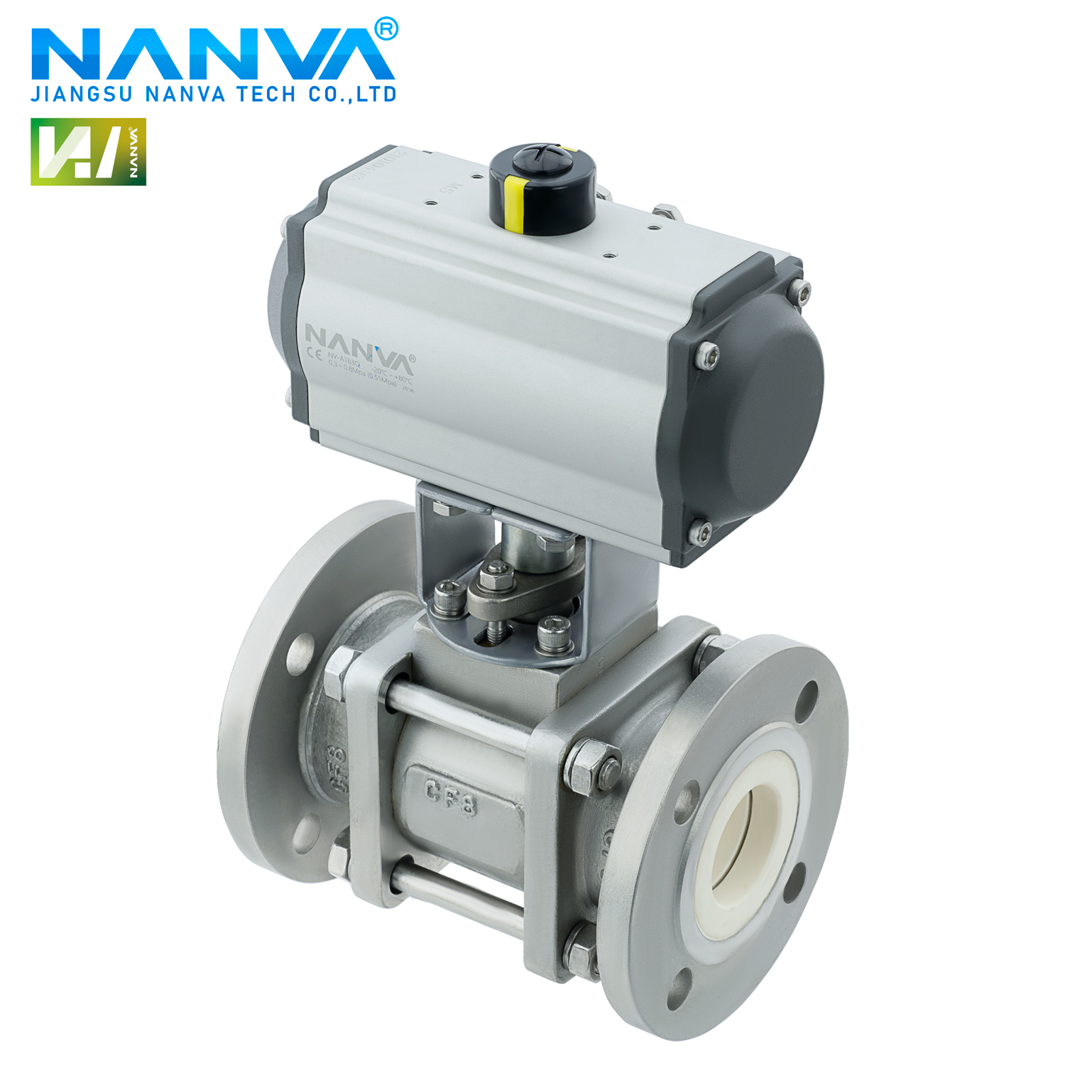 Q641TC-16P气动不锈钢全内衬陶瓷球阀法兰连接高温耐磨切断阀 - 老靳与瑞生