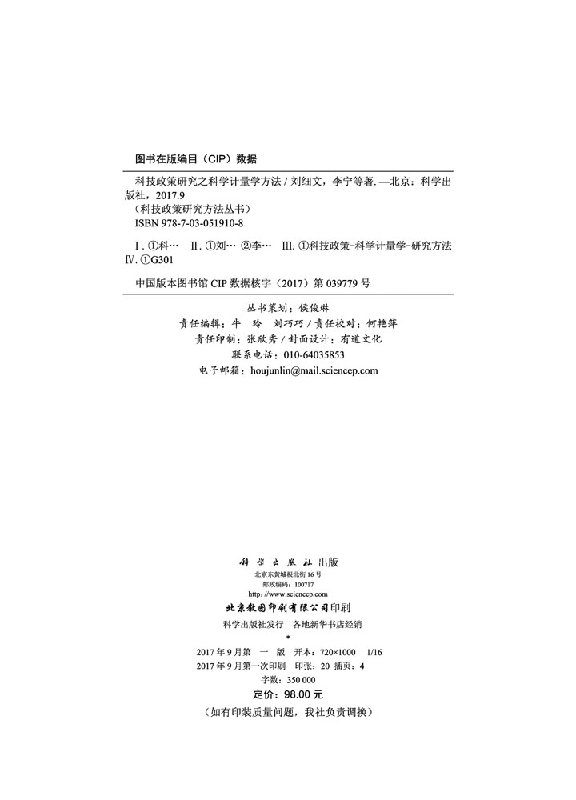 正版现货 科技政策研究之科学计量学方法 科技政策研究方法丛书 刘细文 李宁等 科学出版社