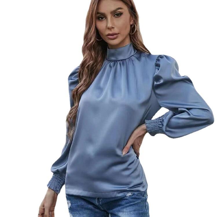 2024 New Elegant Half-turtleneck Bubble Long Sleeve Pleated - 人生必须精彩49的小店
