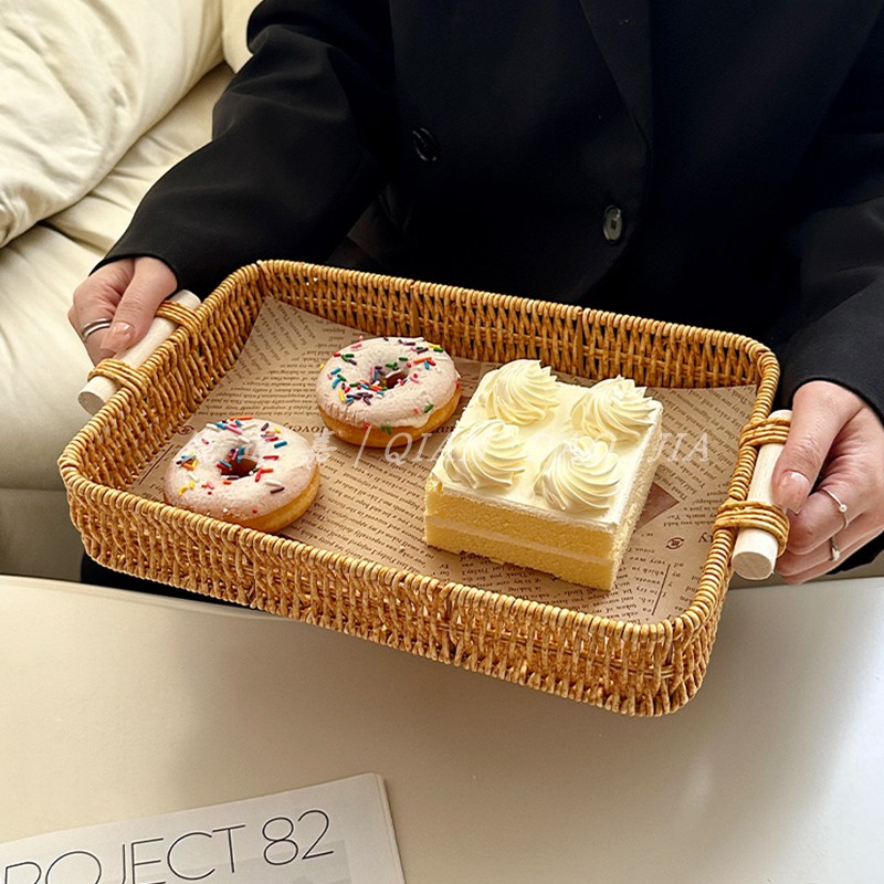 藤编托盘面包篮手工编织水果篮下午茶点心盘小吃零食面包野餐盘子 - INS钱道嘉玻璃馆