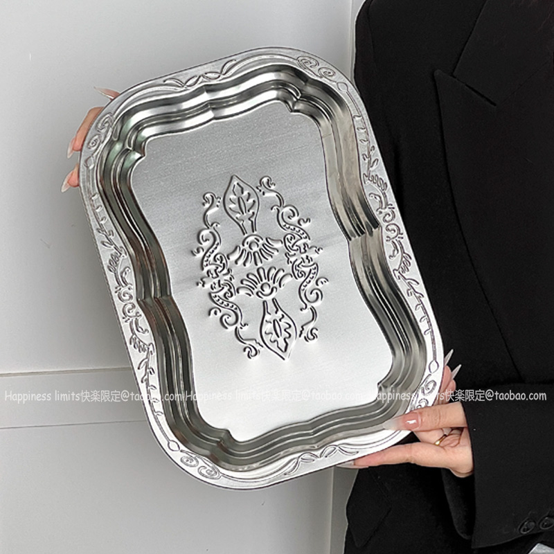 您的位置:他他商城  >   >  不锈钢长方托盘出口压花金属果盘浮雕收纳盘装饰盘干果盘蛋糕盘子
