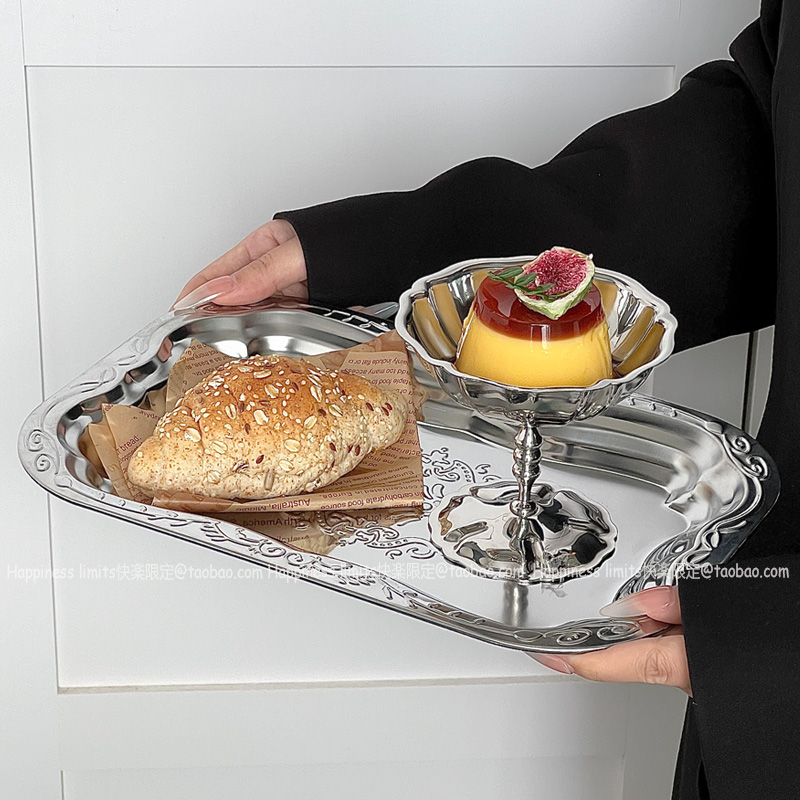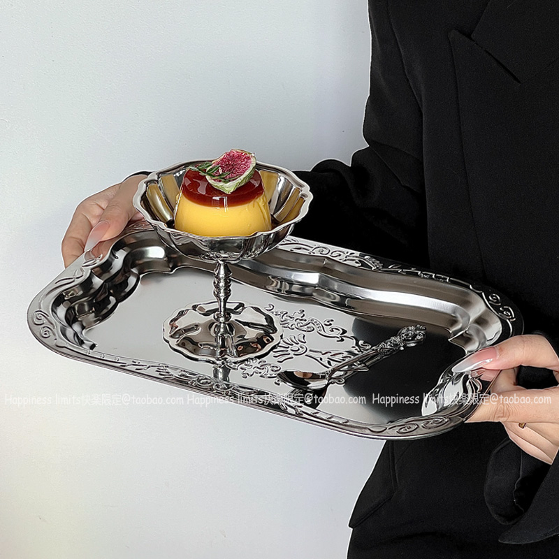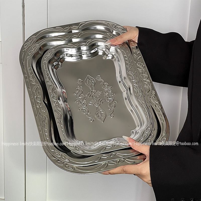 不锈钢长方托盘出口压花金属果盘浮雕收纳盘装饰盘干果盘蛋糕盘子 - Happiness limits快楽限定