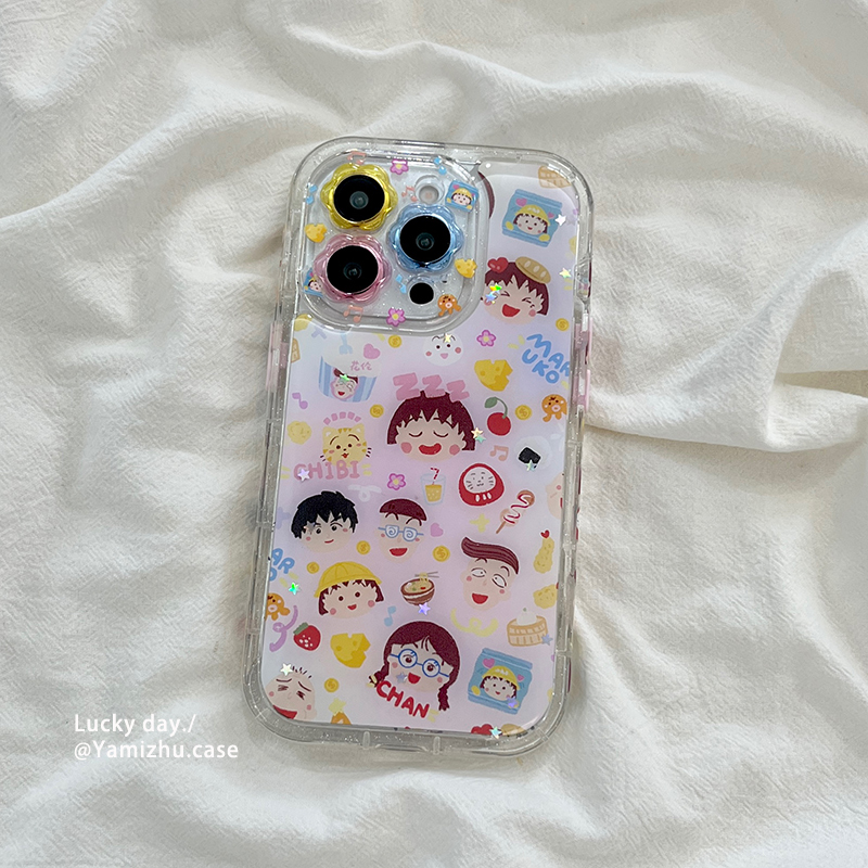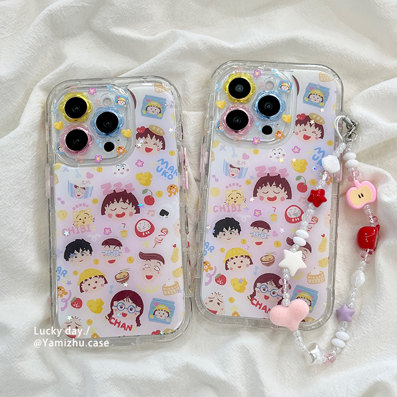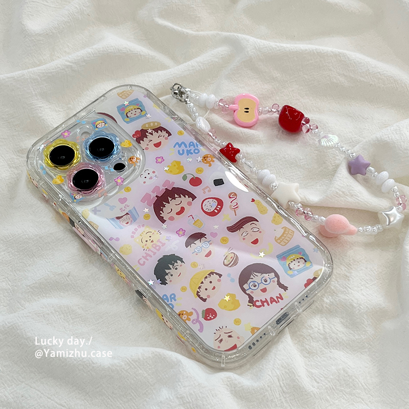可爱卡通樱桃小丸子涂鸦带链条适用苹果16手机壳iPhone14pro小众16PRO新款女款13硅胶15ProMax防摔全包保护套 - 吖咪猪旗舰店