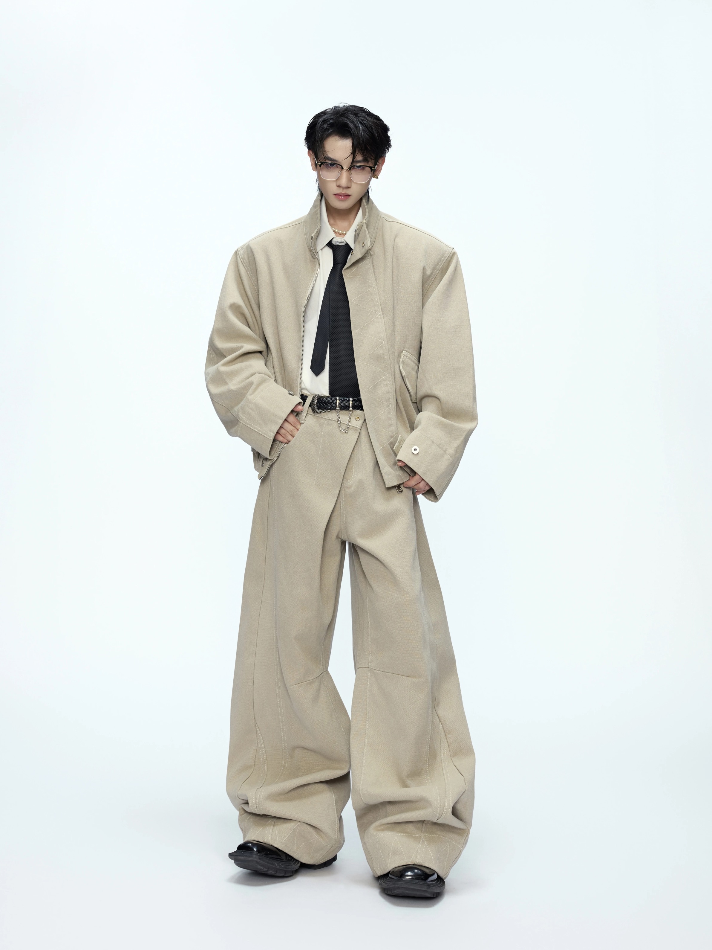 ArguE CulturE复古水洗廓形哈灵顿夹克外套百搭短款立领工装套装 - PASS STUDIO
