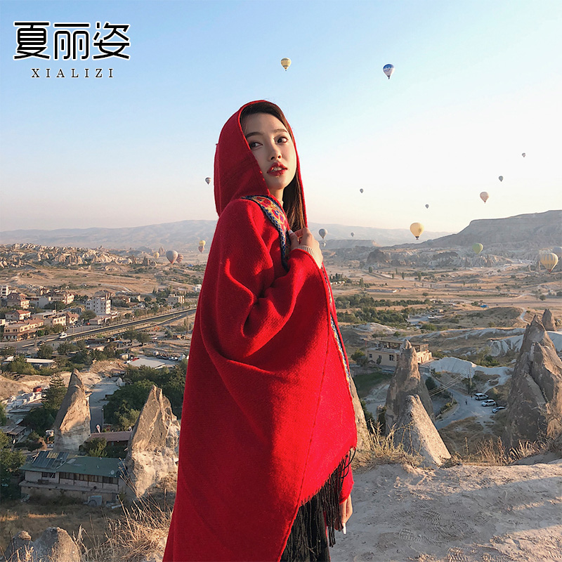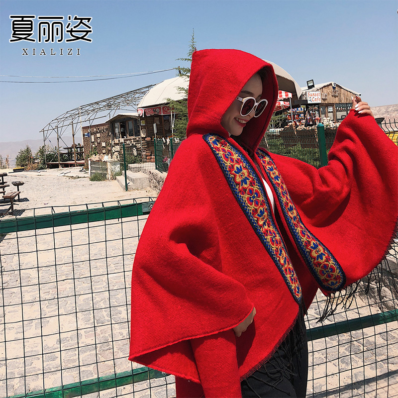 您的位置:他他商城  >  配饰  >  民族风披肩斗篷围巾女冬季西藏丽江青海旅游拍照带帽披风加厚秋天