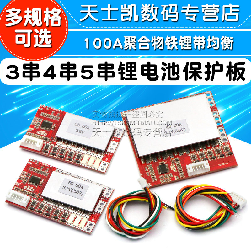 3串4串5串锂电池保护板电动工具逆变器带均衡50A 100A聚合物铁锂 - 天士凯数码专营店