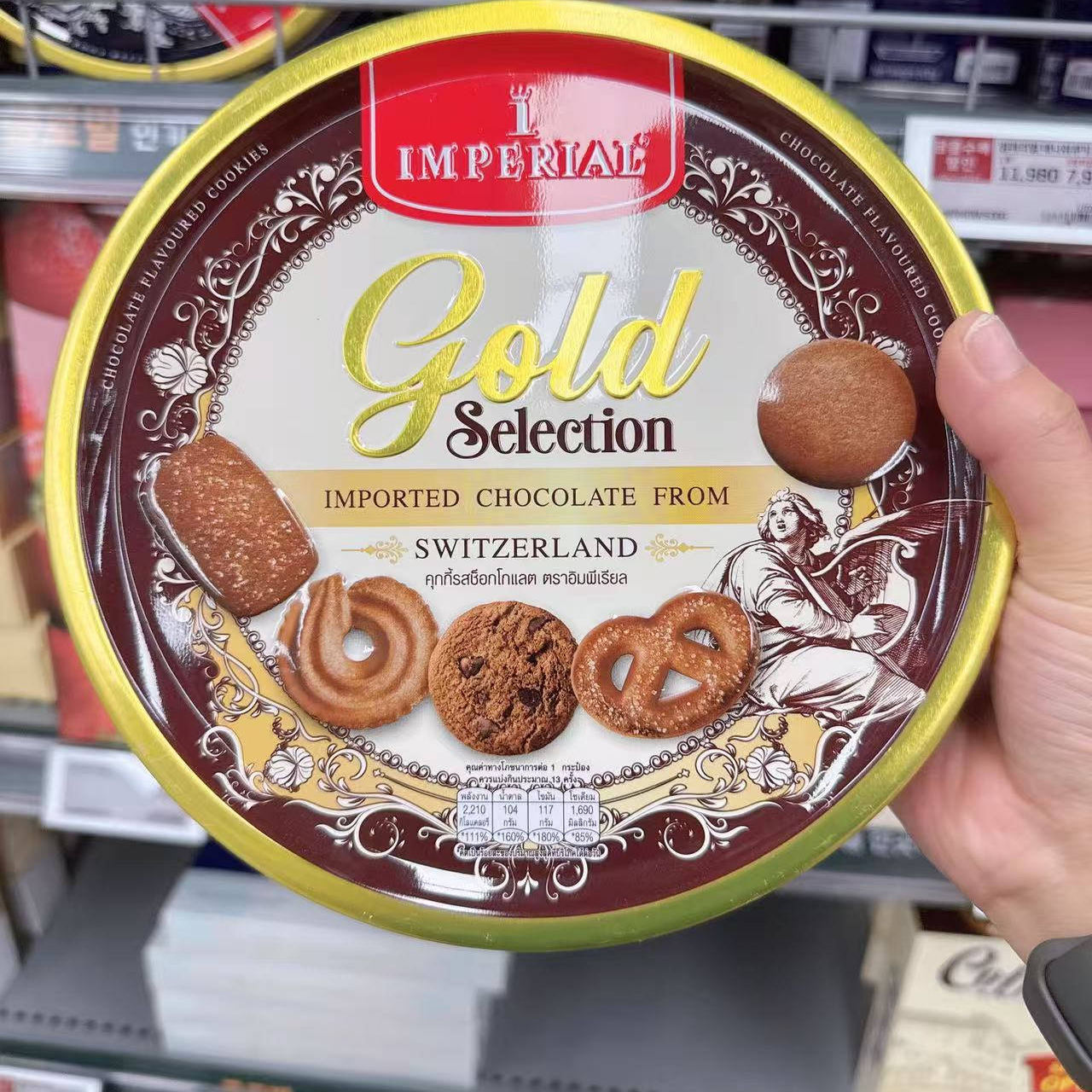 韩国直邮IMPERIAL丹麦瑞士比利时风味黄油巧克力曲奇饼干500g每盒