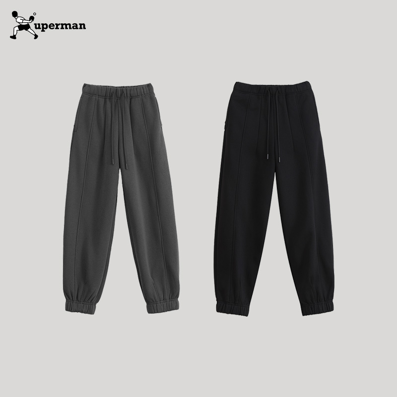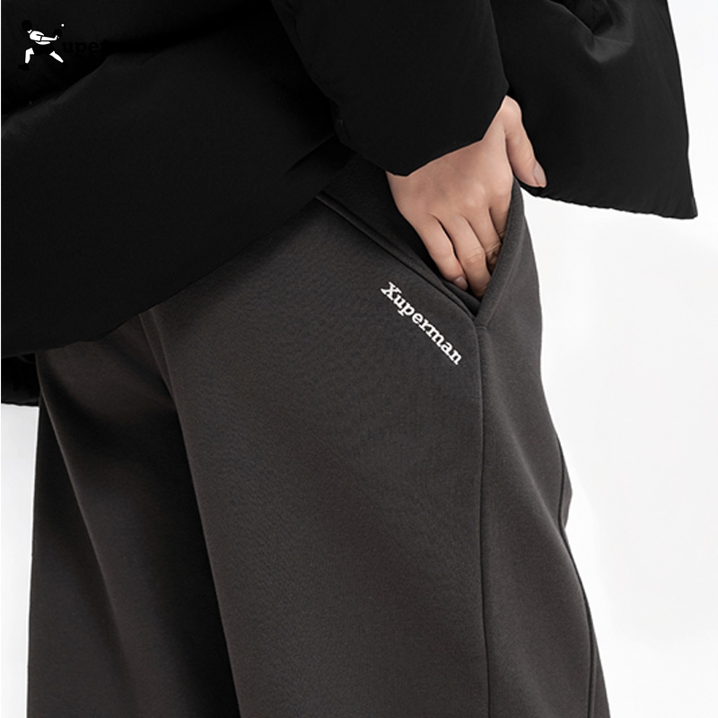 Xuperman冬季加绒收口卫裤男女同款宽松加厚保暖休闲束脚运动裤 - Xuperman旗舰店