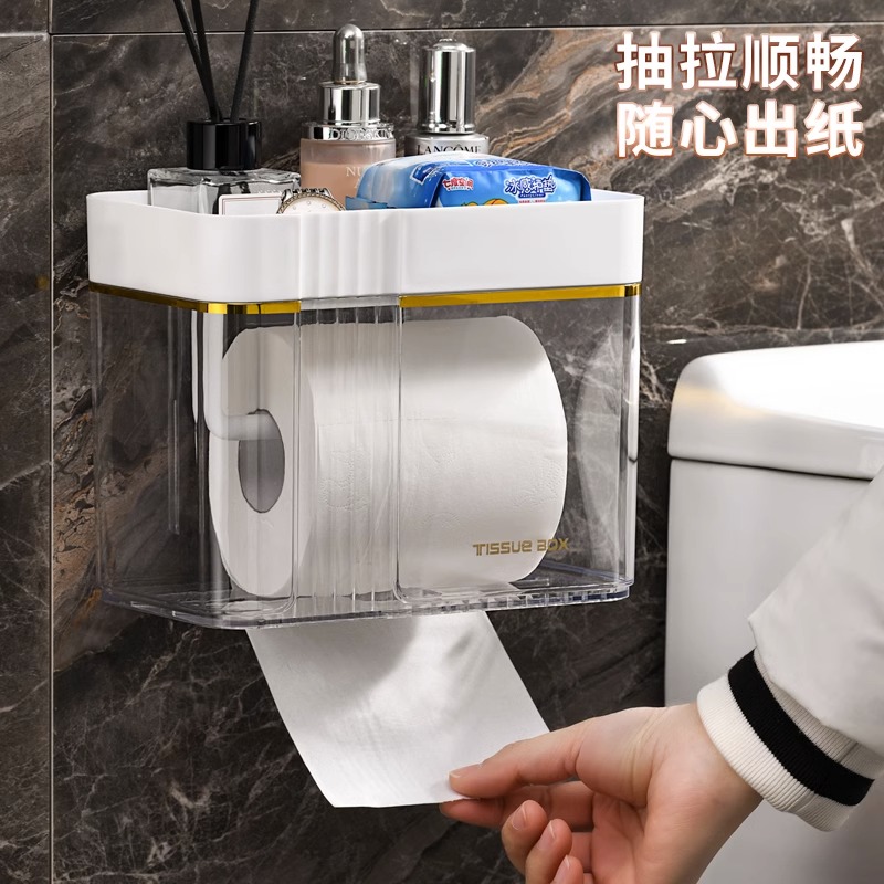 卫生间纸巾盒厕纸置物架厕所纸盒家用免打孔创意防水抽纸盒卷纸筒