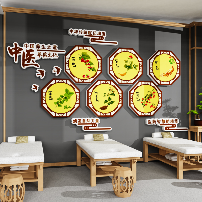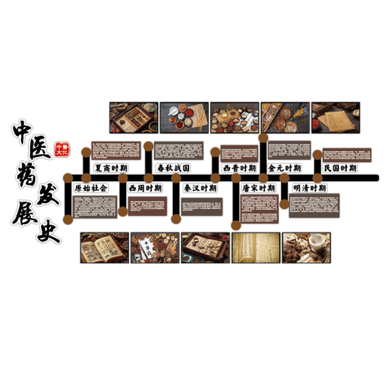 中医药发展史文化墙装饰养生馆形象背景布置理疗诊所药店宣传海报
