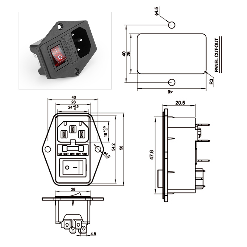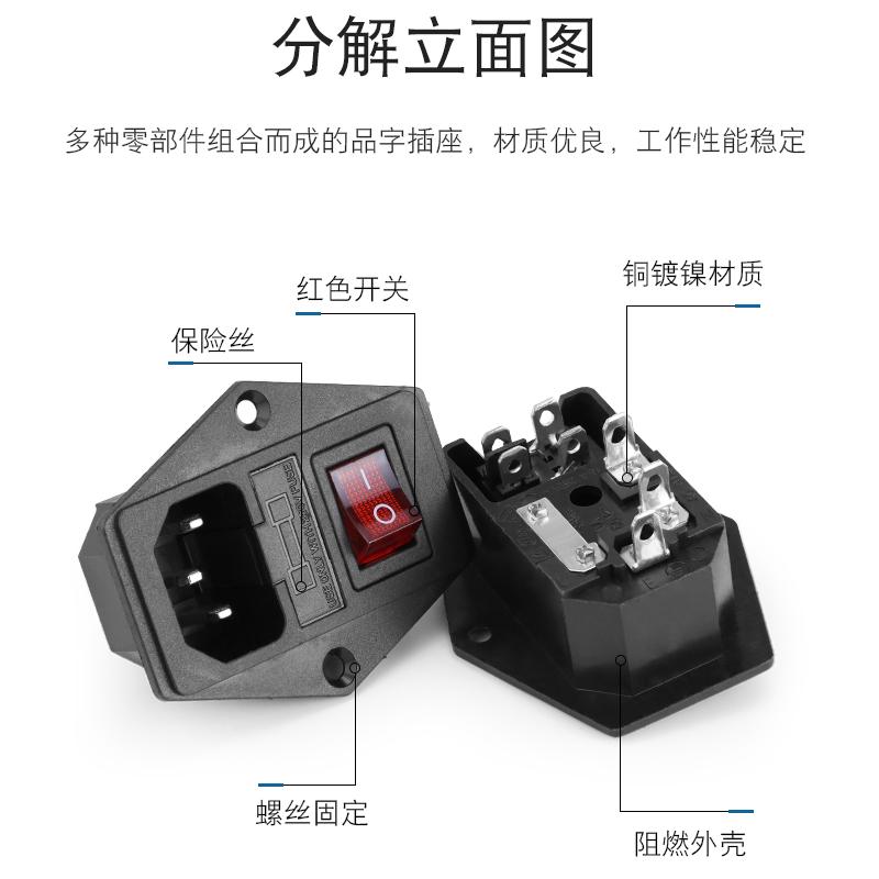 电源插座带灯带保险丝电源插座三合一带开关带保险品字插头 - 汇君