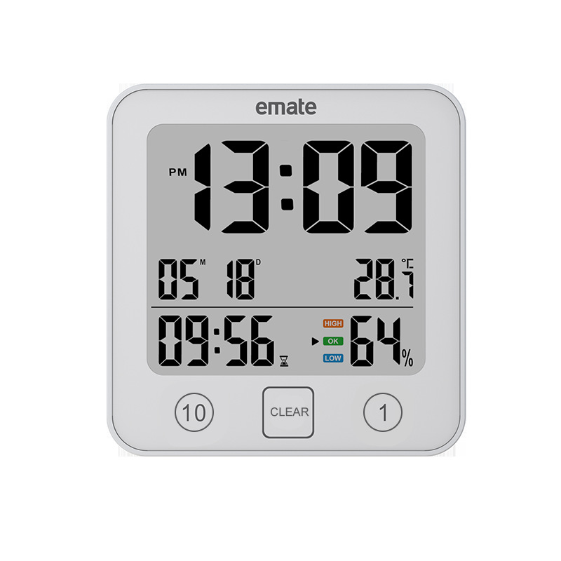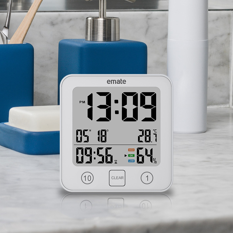 易美特浴室挂钟简约桌面数字钟表温湿度时间日期功能防水壁挂吸盘 - 海陆风潮流精选店