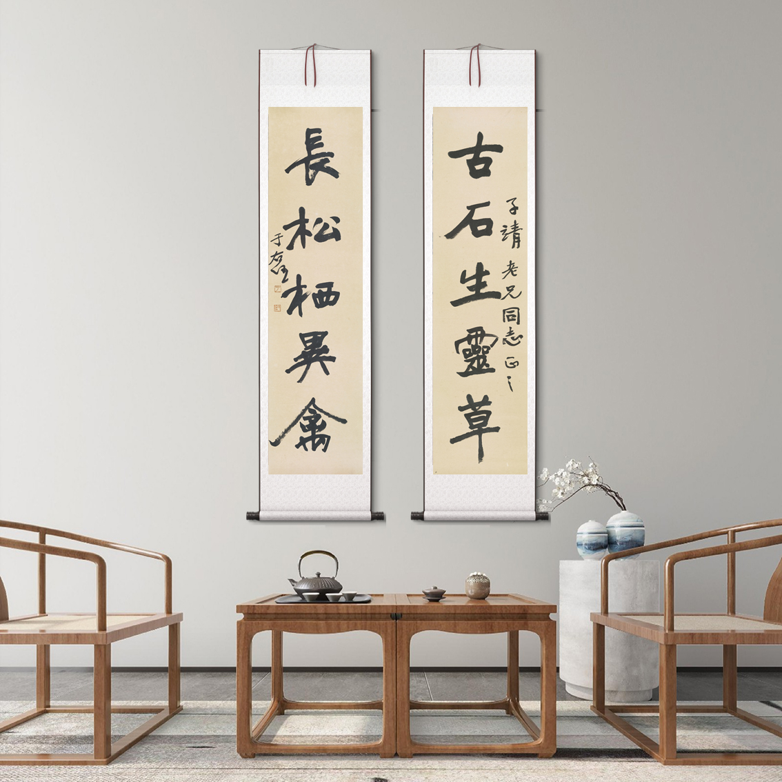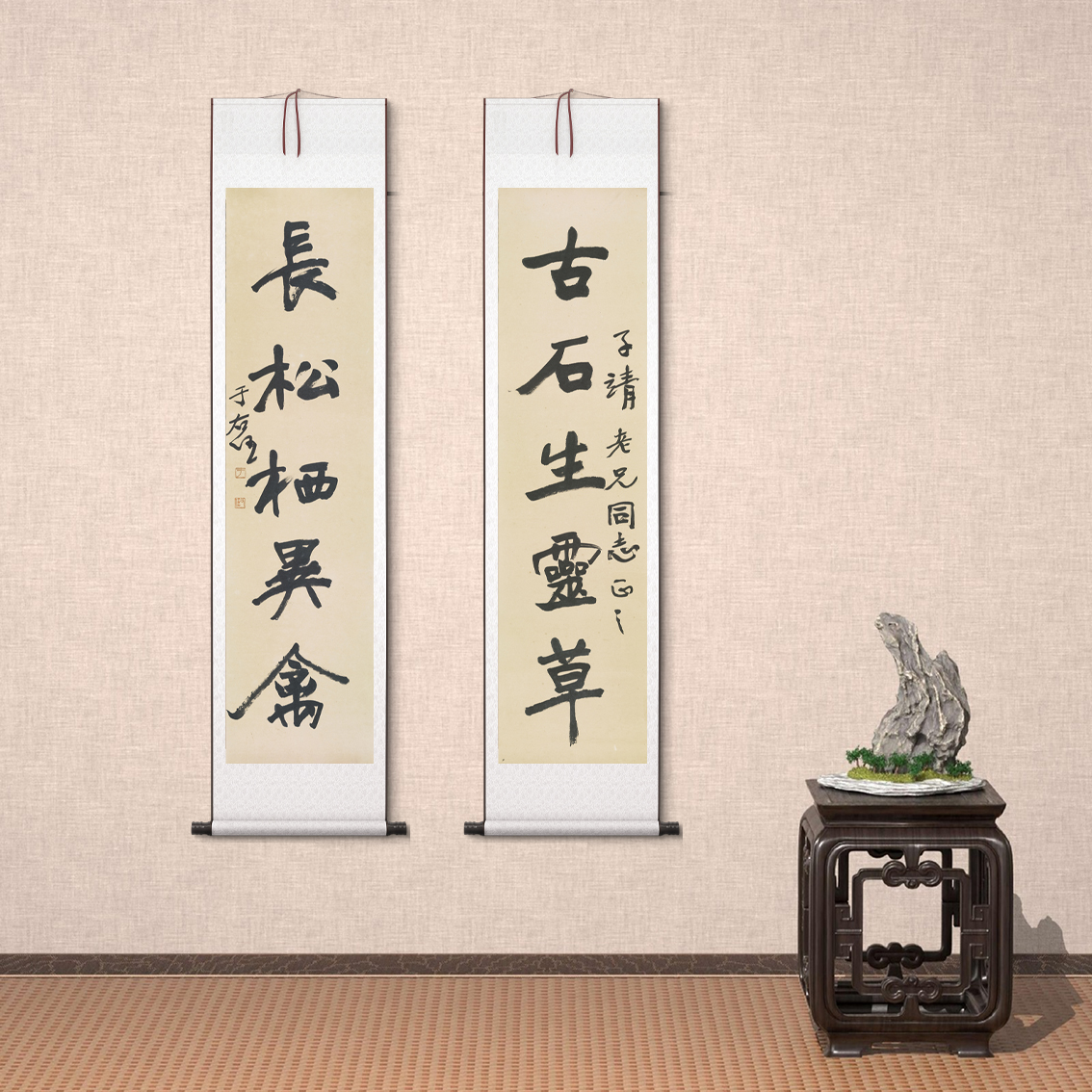 于佑任草书对联长松栖灵禽仿古书法微喷复制装裱挂轴装饰画临摹 - 墨语文化