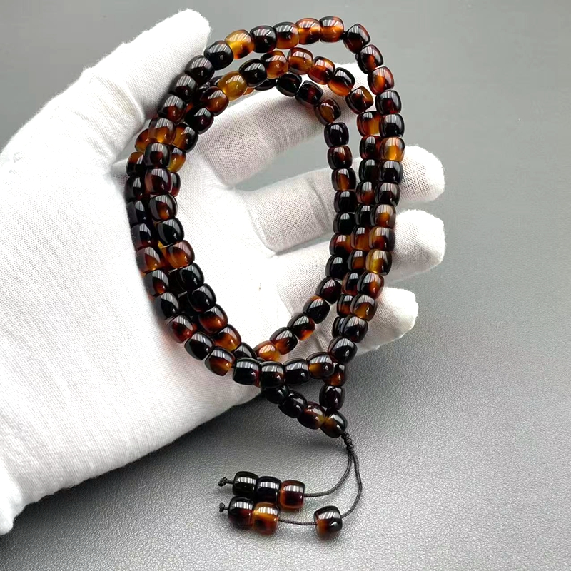 天然玳瑁色108颗佛珠链山龟壳干磨老型珠项链手持养身文玩饰品 - 西域文玩配饰