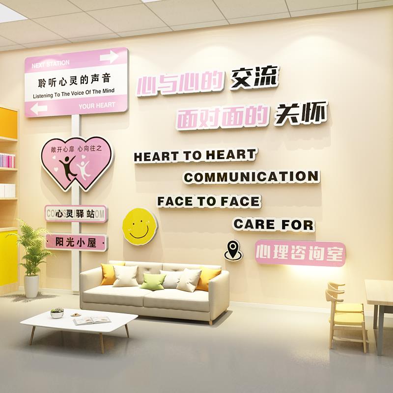 心理咨询室布置装饰文化墙贴心灵驿站健康辅导室挂图背景形象互动 - 乔乔工厂店