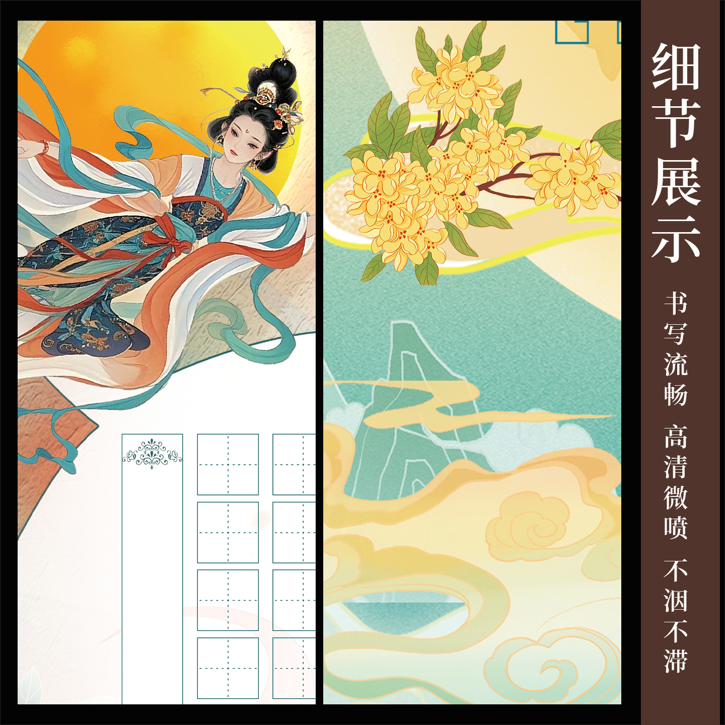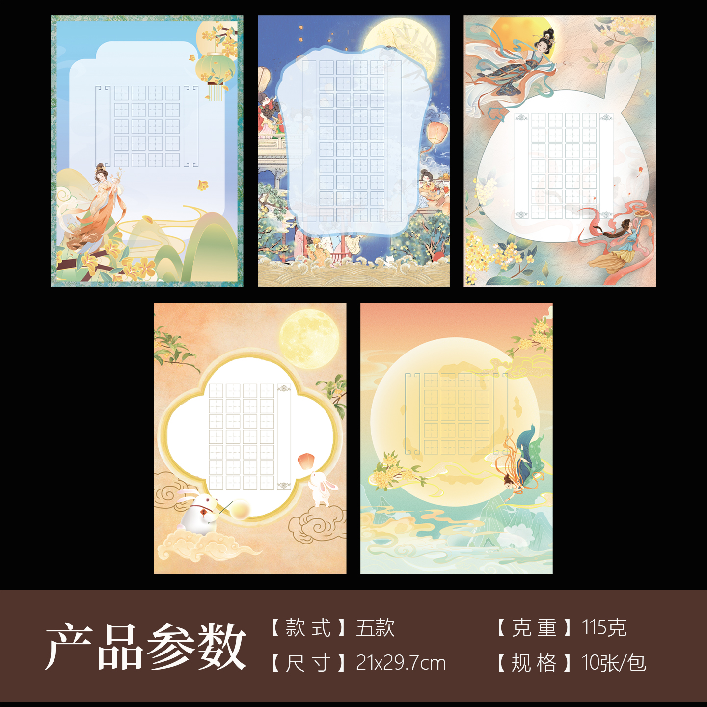 酷的a4硬笔书法作品纸中秋节书法作品纸加厚国风硬笔书法作品纸广寒栖梦五言七言古诗词书法专用书法纸练习纸 - 酷的旗舰店