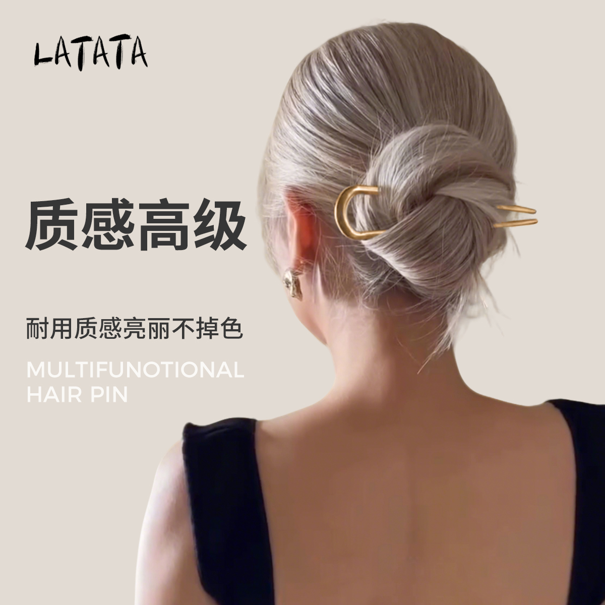 LATATA金属U型发簪后脑勺法式盘发神器高级感气质大号弧形簪子 - LATATA只做好配饰