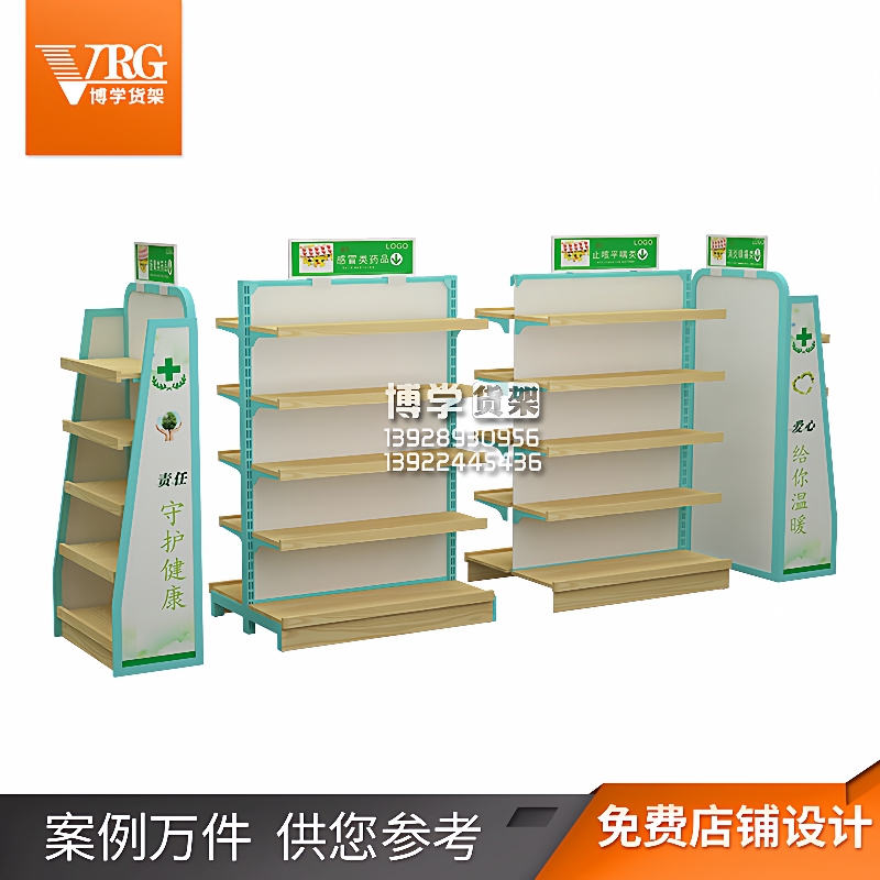 药店双面多层货架药房中西药展示架钢木药品店货架高柜展示架厂家 - 长久机械
