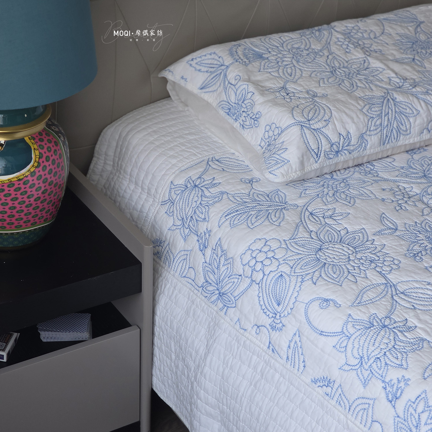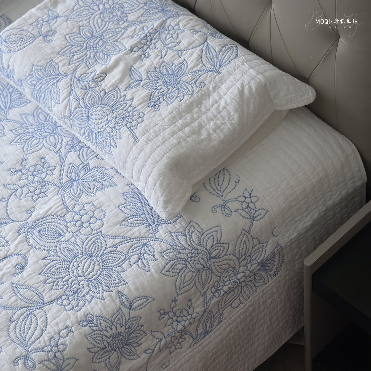美式轻奢全棉绗缝床盖三件套四季通用夹棉床单 - 摩祺家纺