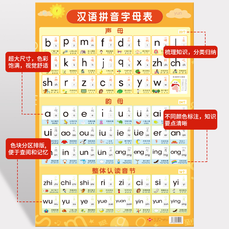 汉语拼音字母表墙贴拼读训练学习神器声母韵母一年级儿童早教挂图 - 萌婆媳日用百货商品