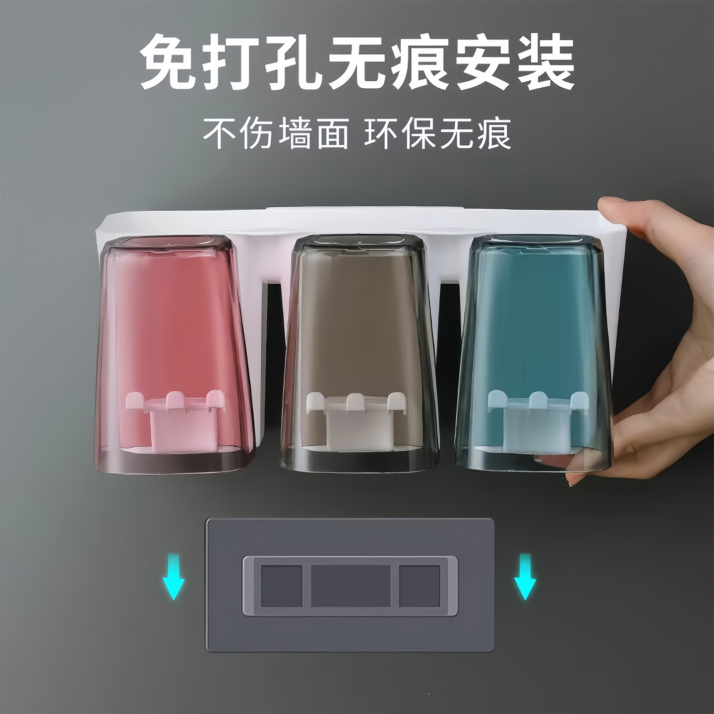 牙刷置物架免打孔漱口杯刷牙杯卫生间壁挂式家庭电动牙膏牙刷架子 - 全家日用百货超市