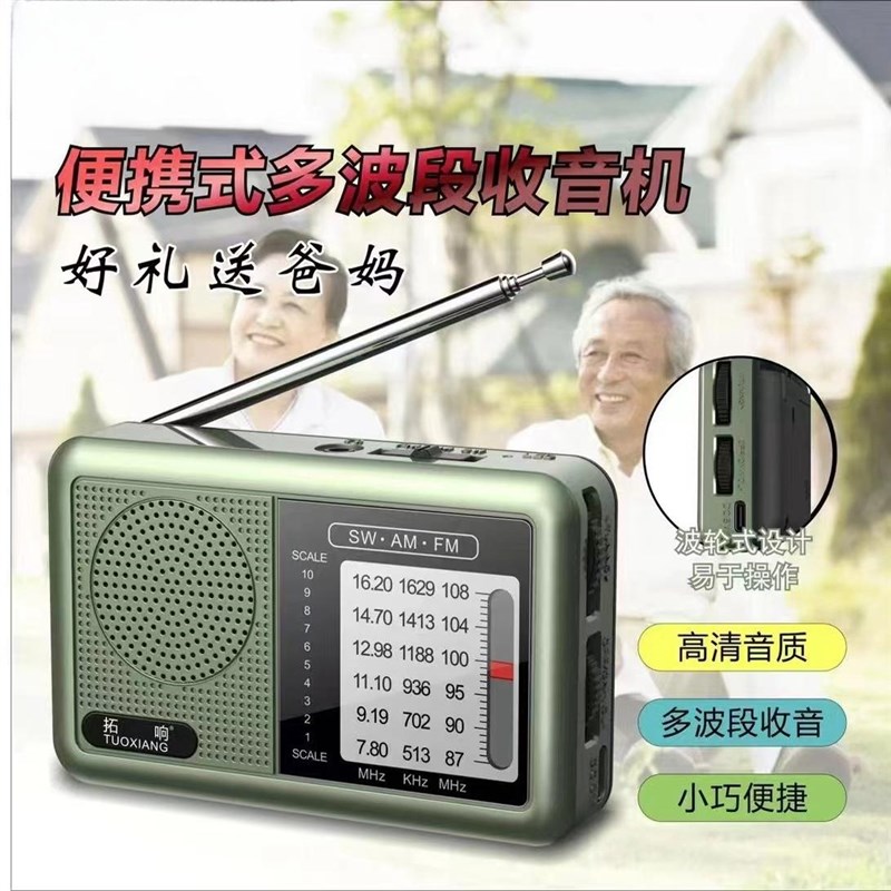 多波段收音机袖珍老式调频FM老年人便携式迷你收音机手动半导体