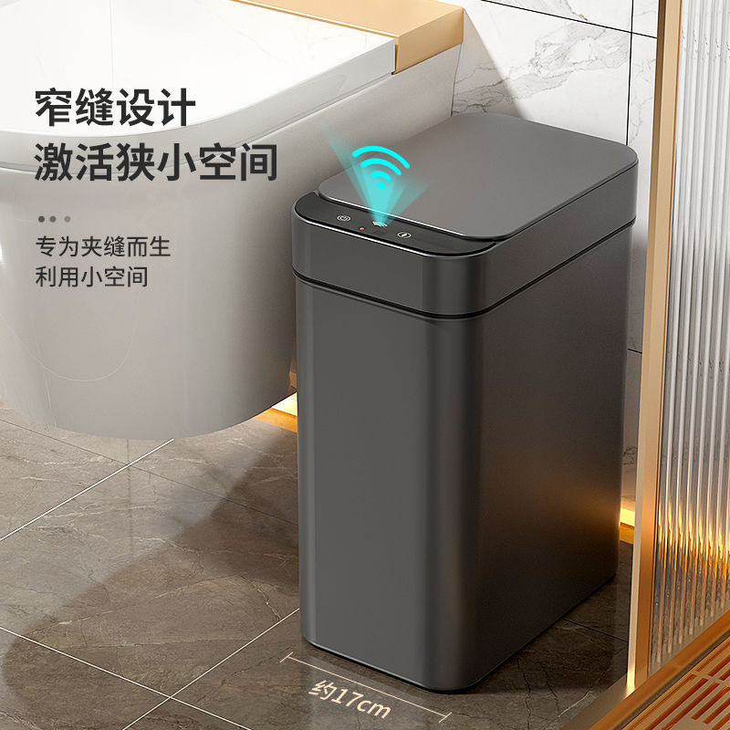 智能垃圾桶家用感应式厨房卫生间厕所夹缝纸篓自动吸附套袋电动 - 嘉而优企业店