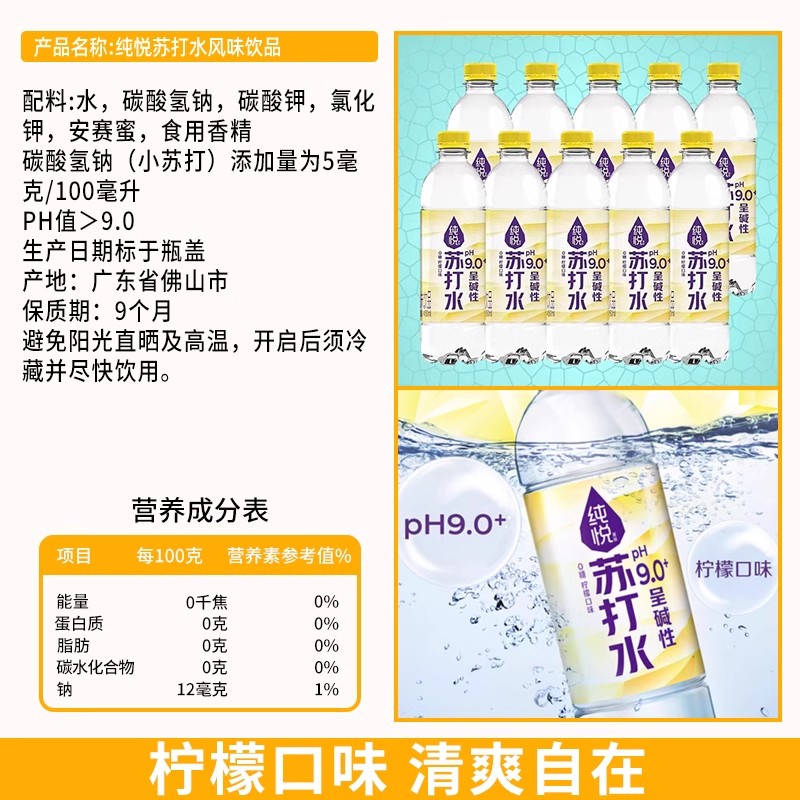 可口可乐纯悦苏打水柠檬风味饮用水无糖纯净水办公室休闲饮品整箱 - 钟意食品专营店